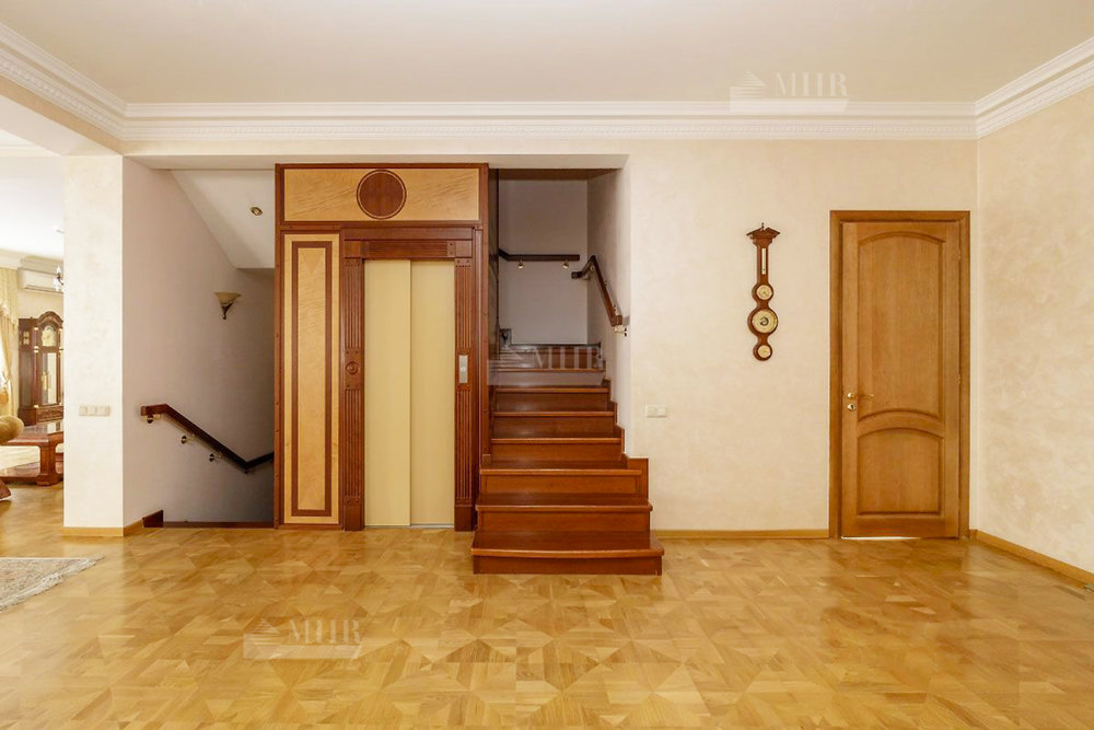 1 этаж: прихожая, гардеробная, холл, кухня, столовая, гостиная с роялем, гостиная с камином, выход на террасу 120 кв.м., кабинет с ванной комнатой, гостевой с/у, зимний сад, лифт;