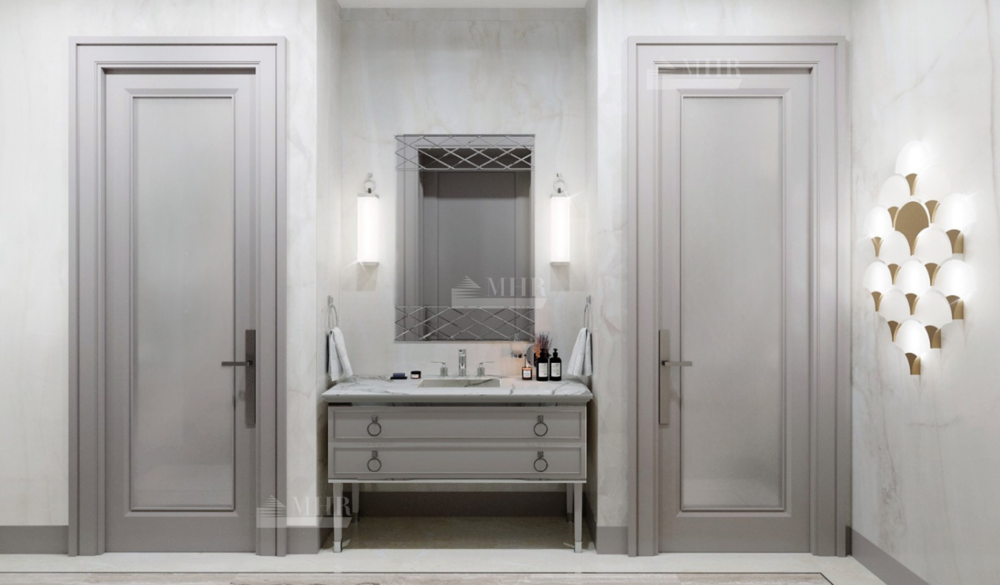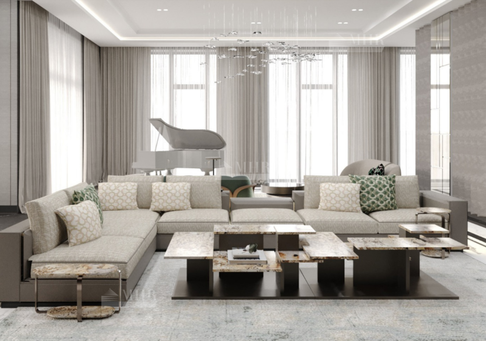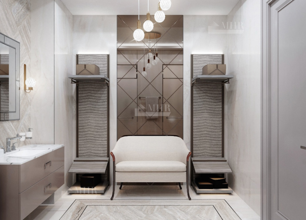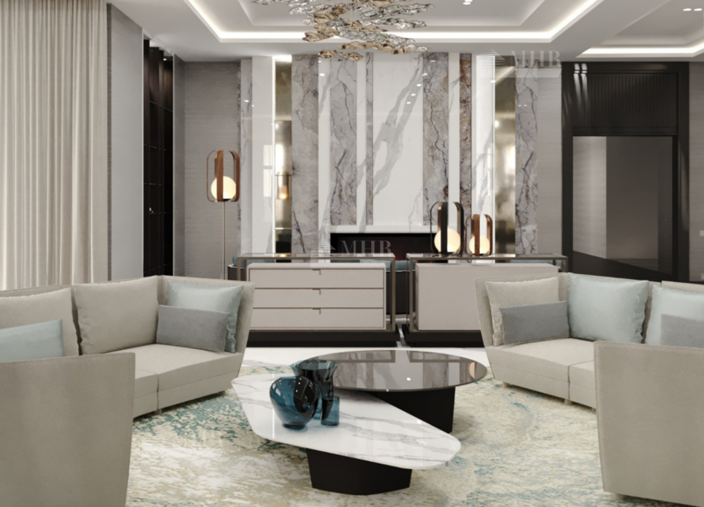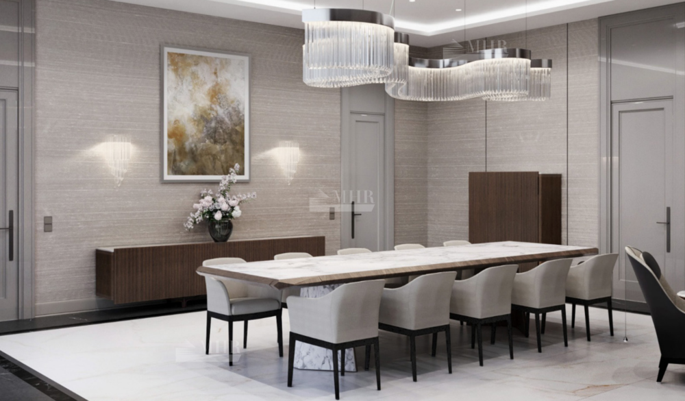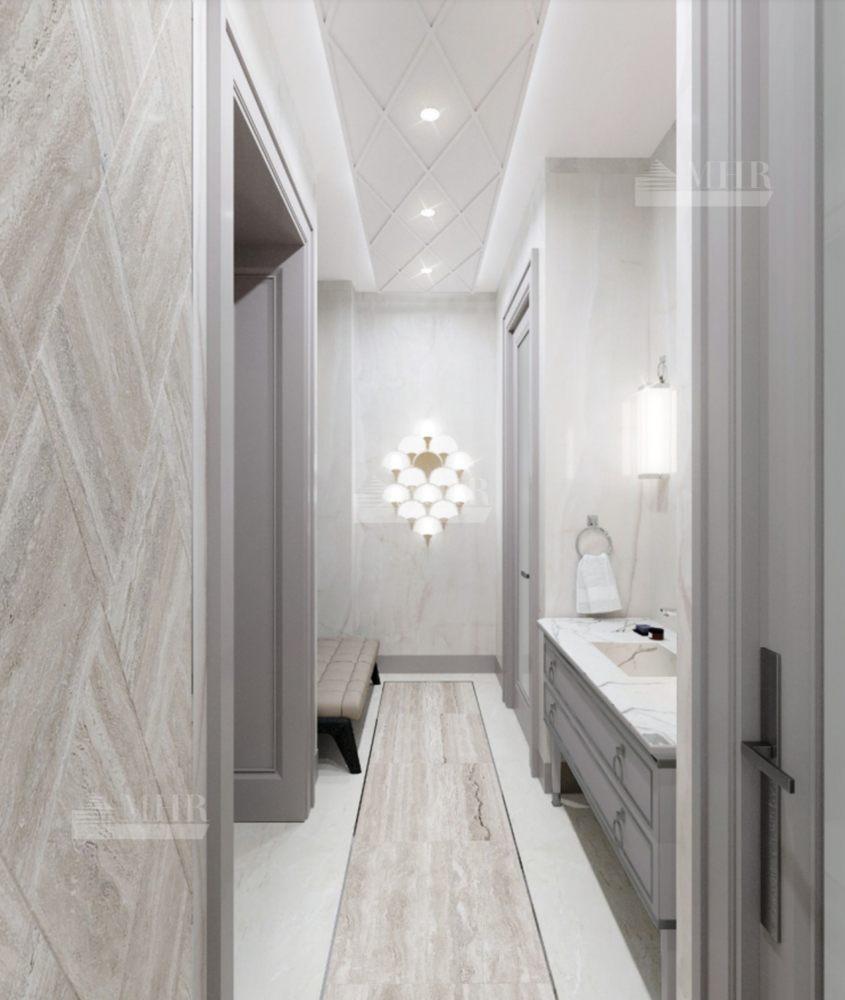 В доме детально продуманная планировка: 6 спален, 9 санузлов, кухня, гостиная-столовая с выходом на террасу, зимний сад, спа-зона с бассейном и сауной, блок для персонала, гараж на 6 машин.