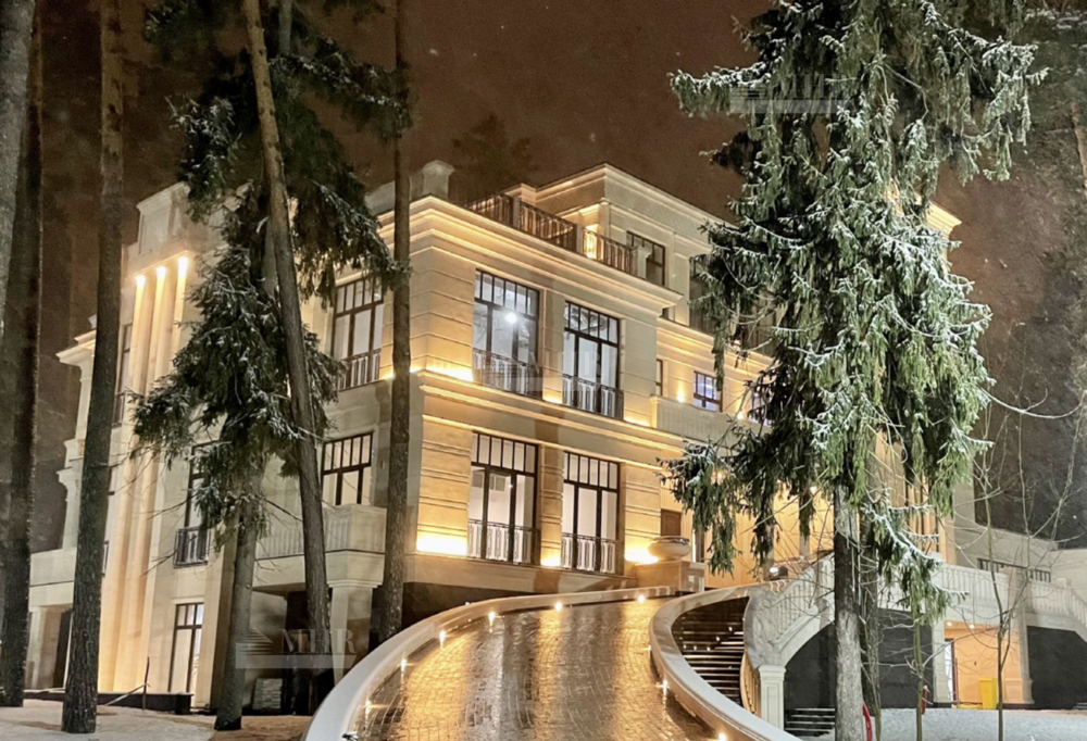 Дом с отделкой в охраняемом посёлке «Жуковка-2». Площадь дома – 4300 кв.м., лесной участок – 80 соток. Выделенные мощности на дом: электрика – 370 кВт, газ – 600 кВт. Все сети центральные: водоснабжение, канализация хозбытовая, канализация ливневая.