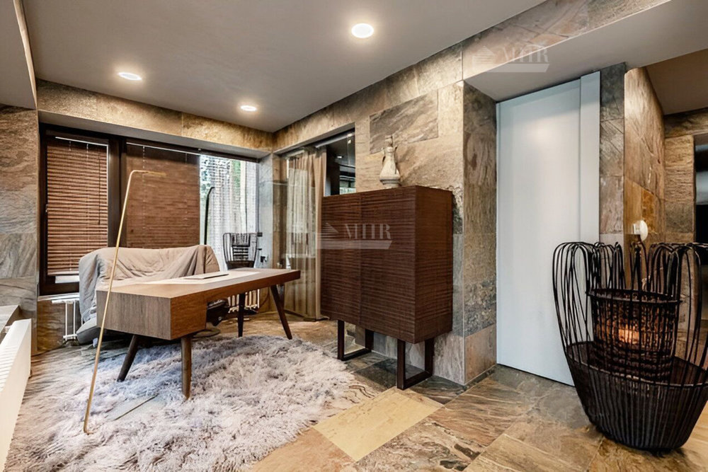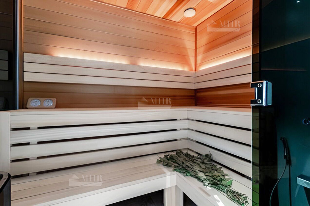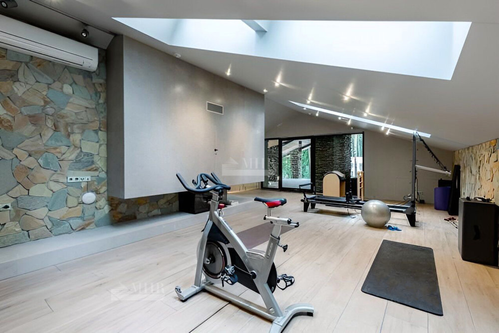 1 этаж: прихожая, гараж, гардеробная, санузел, гостиная, кухня, столовая, терраса, спальня с санузлом, рабочая кухня, кабинет, СПА-комплекс, хаммам, сауна, бассейн, тренажерный зал, спальня, комната для персонала.