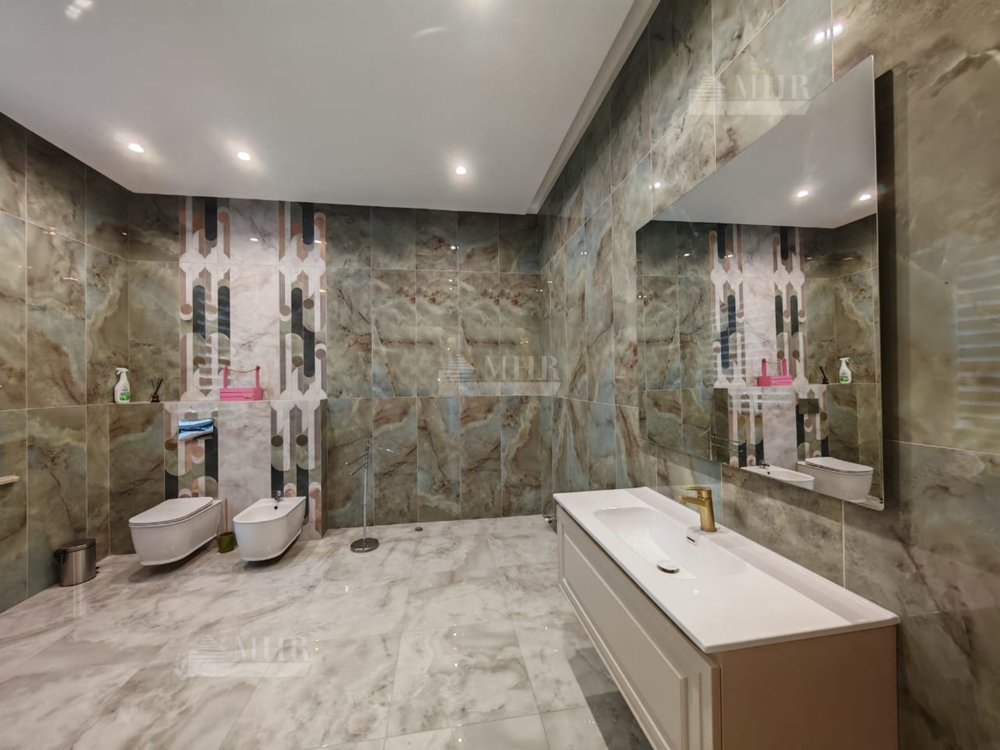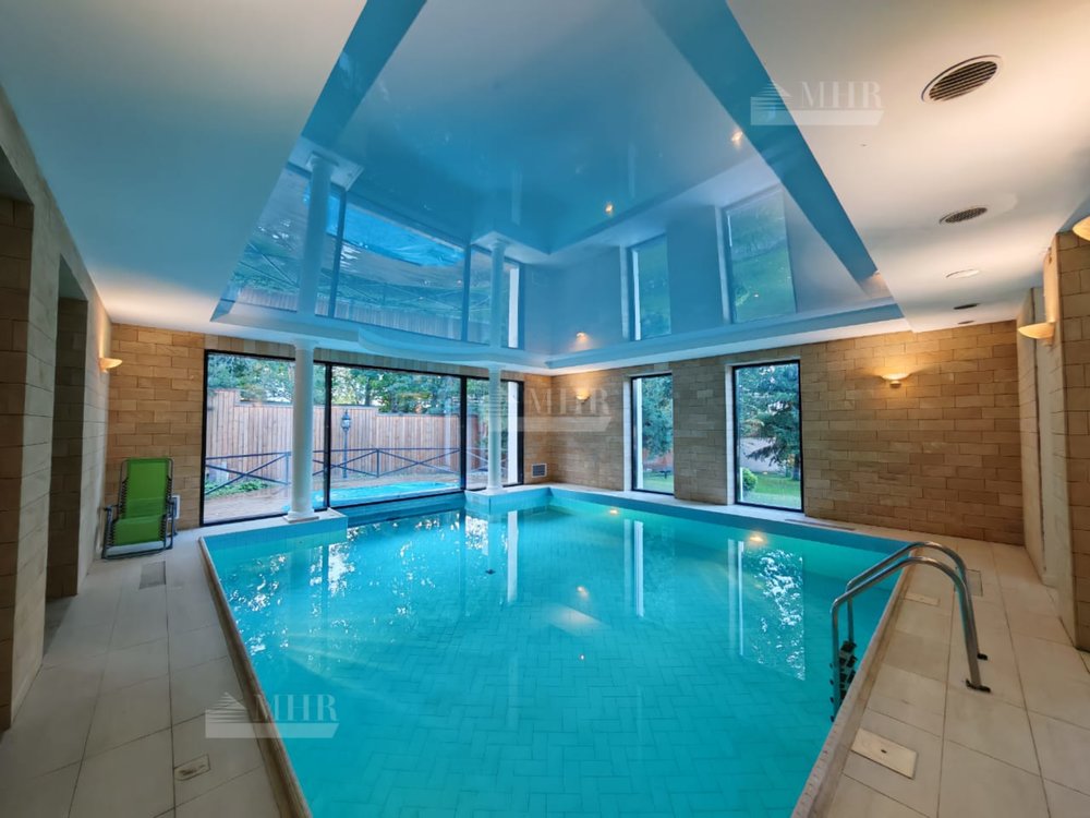 1 этаж: прихожая, холл со вторым светом, малая гостиная, с/у с душем, спортивный зал, кухня с выходом на улицу, столовая с камином, гостиная, гостевая спальня с с/у, бассейн с зоной отдыха, хамам, сауна, с/у, джакузи.