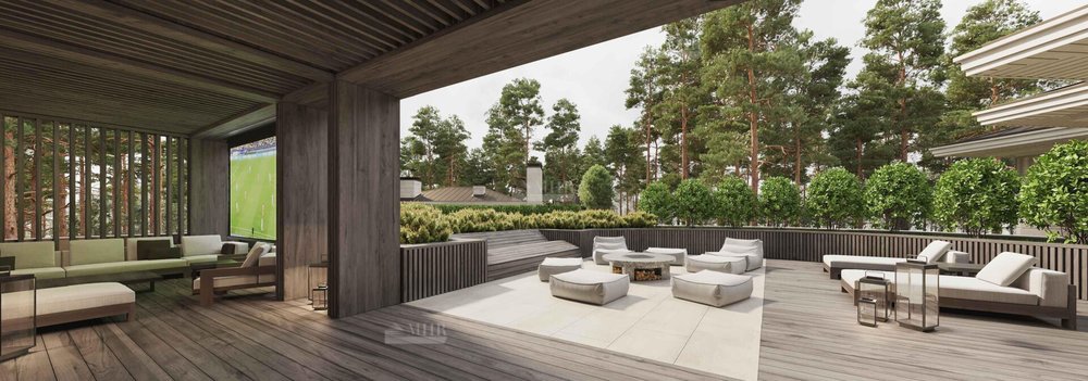 1 этаж: холл, гардеробная, с/у, кабинет, столовая, сервировочная, винная комната, кухня, подсобное помещение, бассейн, снежная комната, сауна, хамам, душевая, купель;