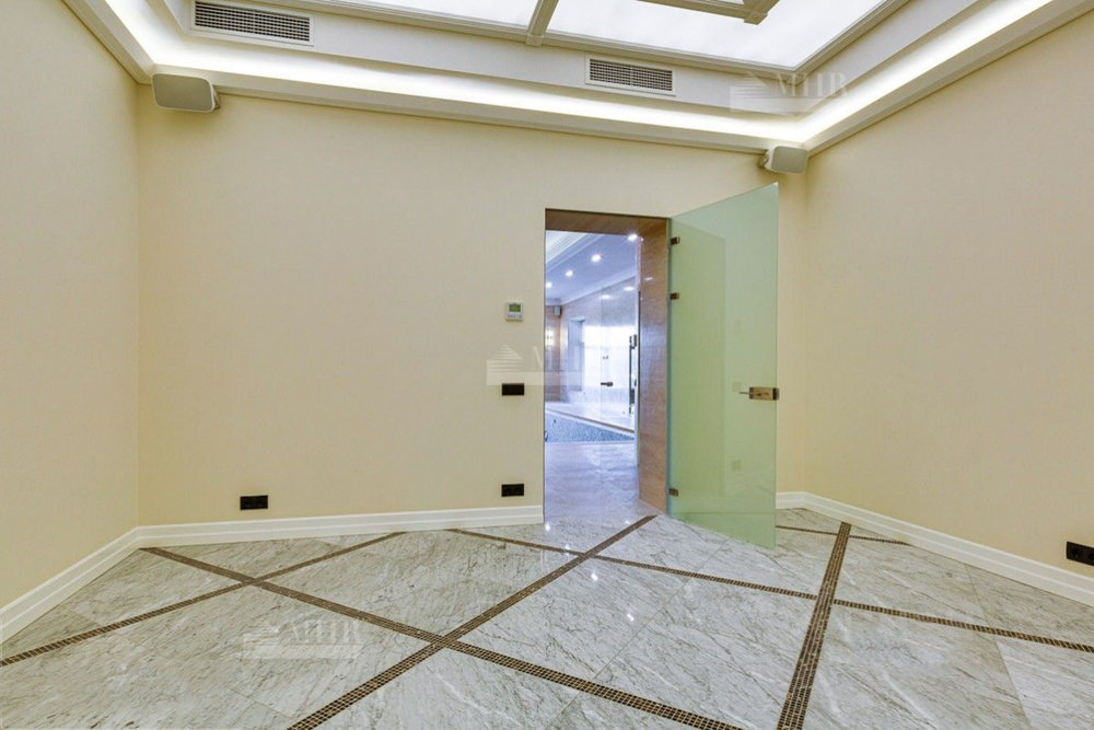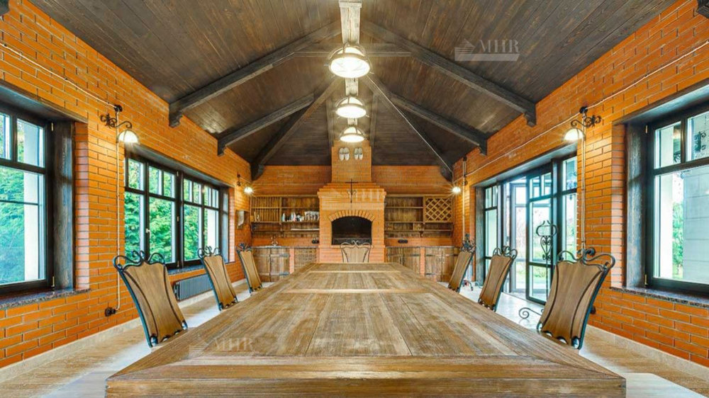 Внутренняя отделка сделана из качественных материалов. На участке также расположен дом для персонала с гаражом на 3 автомобиля, дом для охраны и зимняя BBQ.