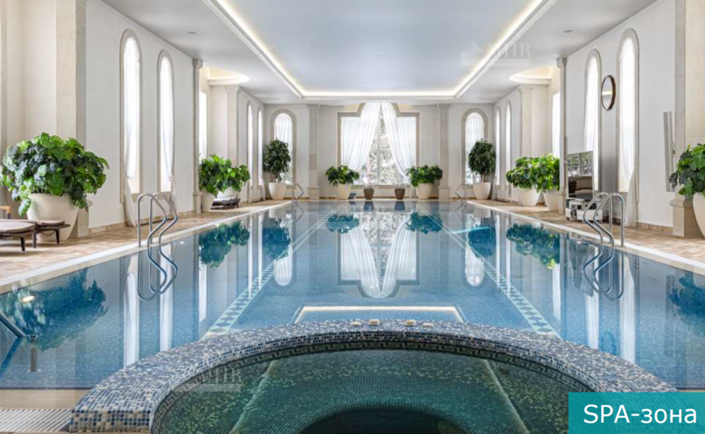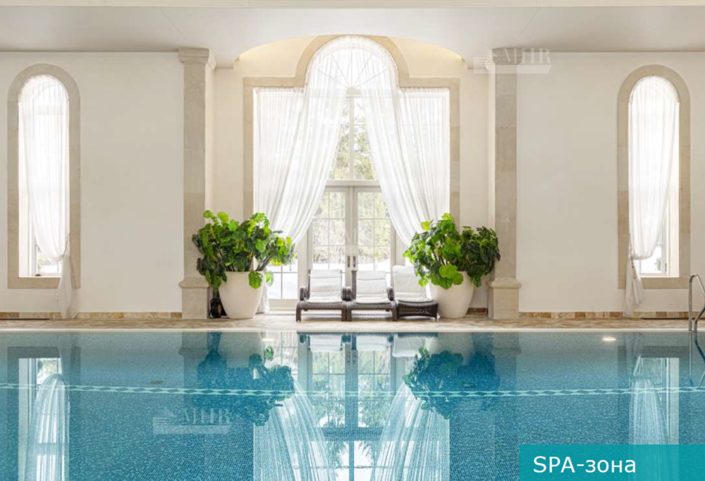 жизни: прекрасная двусветная гостиная с камином, шесть спален, девять санузлов, шикарная spa-зона с бассейном, сауной и хаммамом, тренажерный зал,