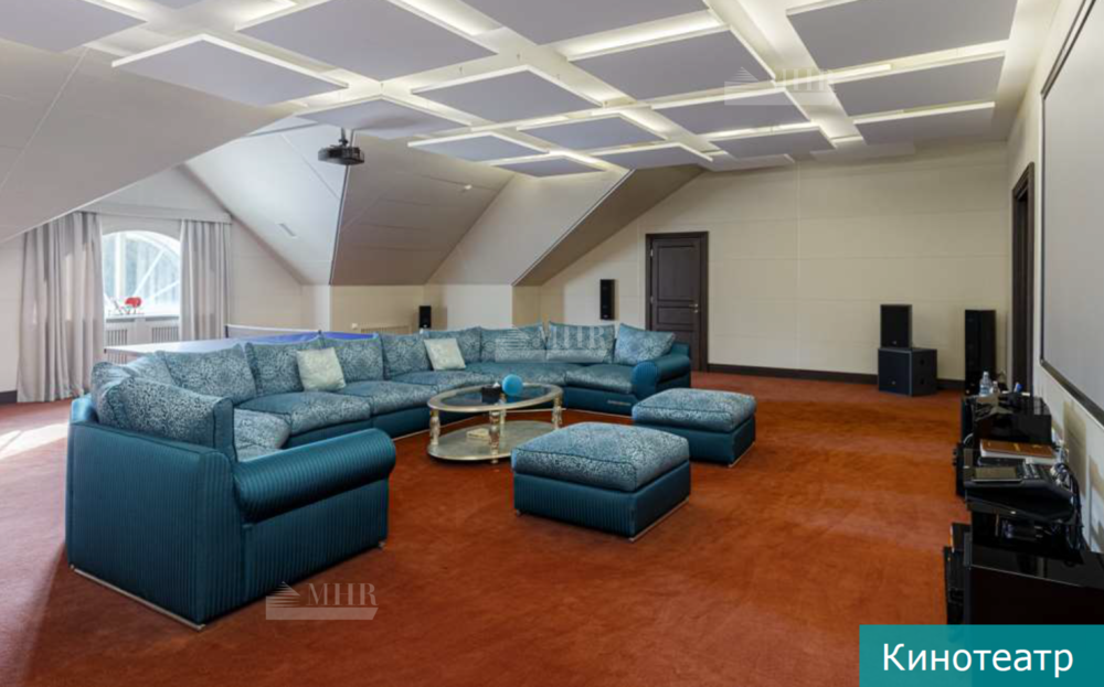 кинотеатр, есть рабочая кухня и блок для персонала, предусмотрен встроенный гараж для трех автомобилей.