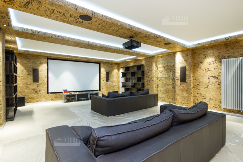Цоколь: рабочая кухня с лифтом, домашний кинотеатр, винная комната, постирочная, кладовая, лифт, подсобные помещения;