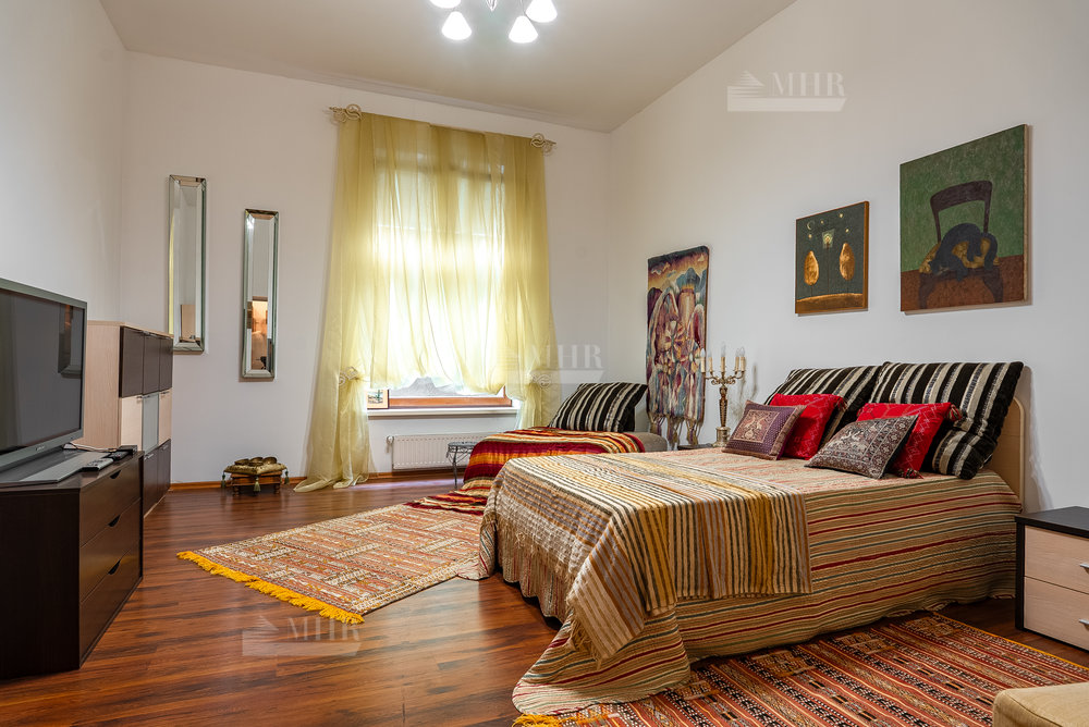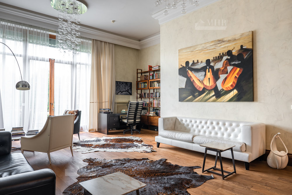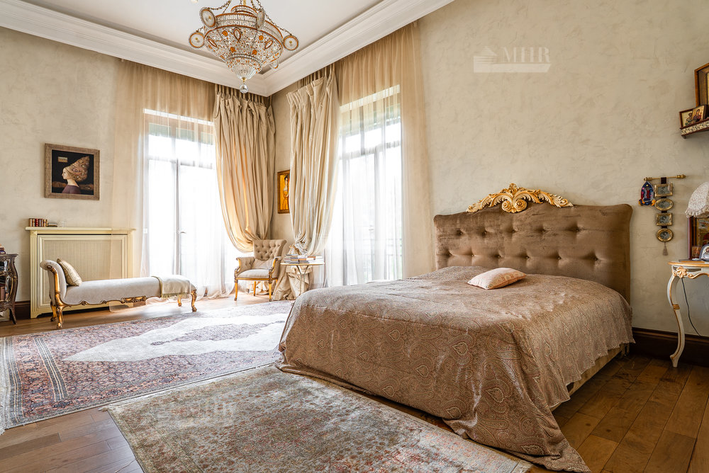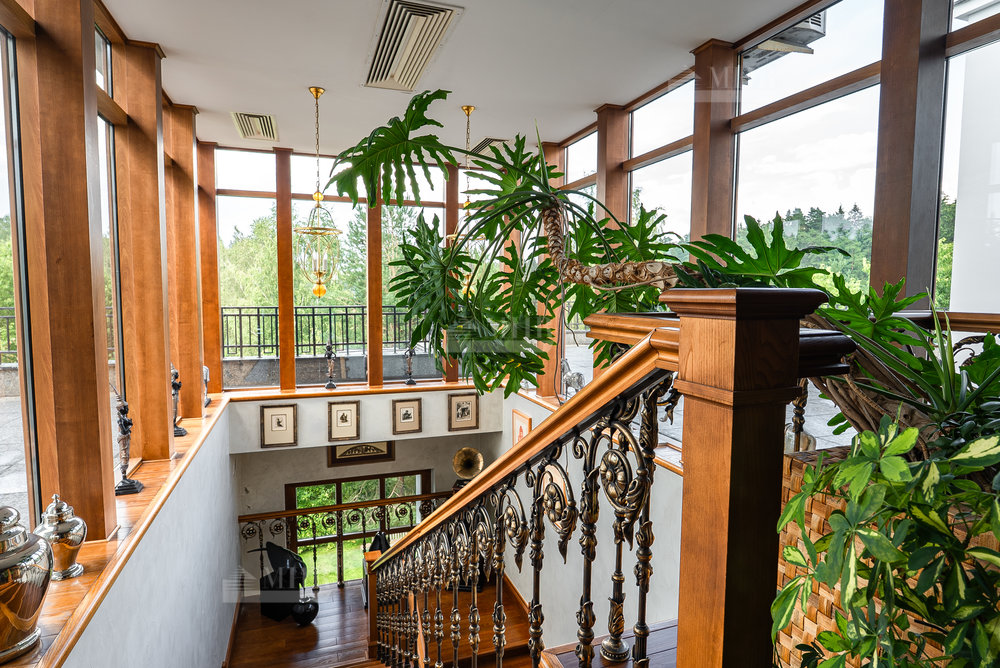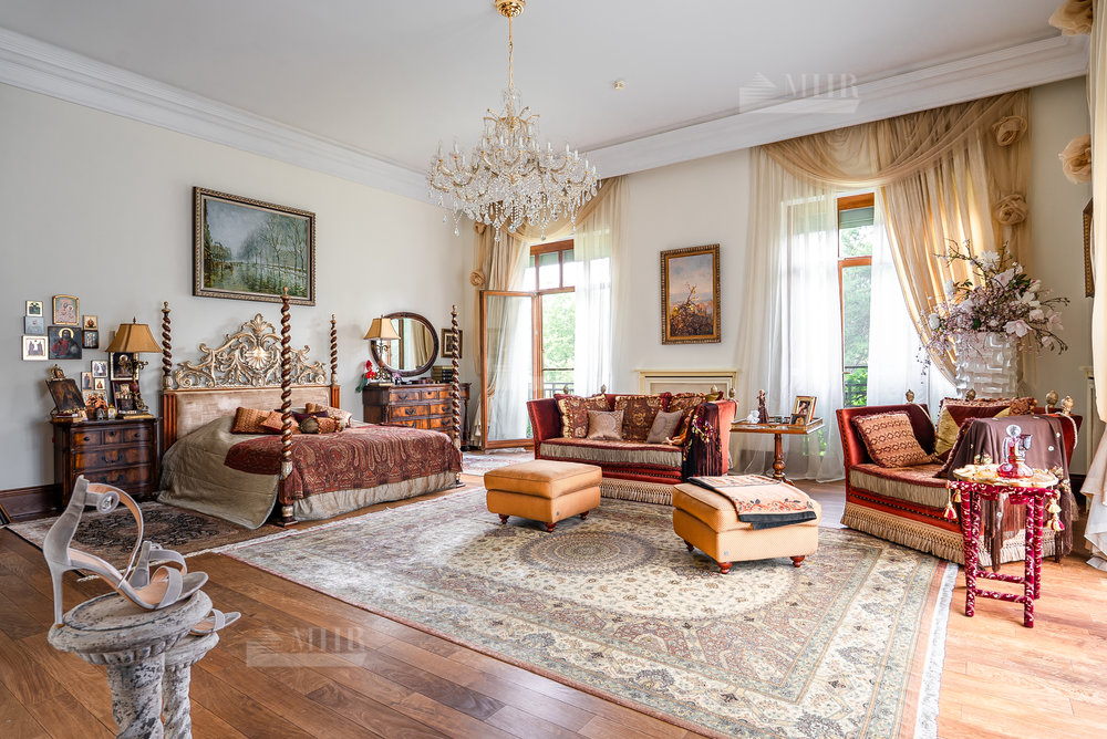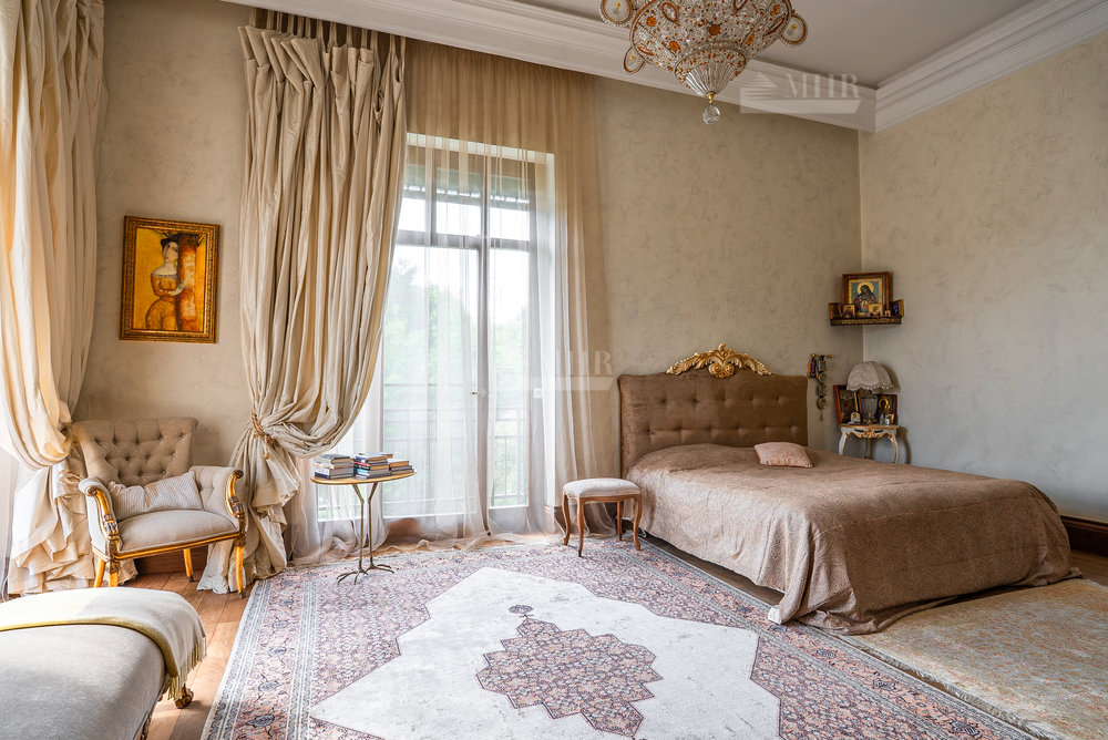 Цоколь: квартира для персонала (2 спальни, кухня, ванная комната), киногостиная с танцевальной зоной и репетиционной базой, с/у, винный погреб с дегустационной комнатой, сезонная гардеробная, кладовые и технические помещения, лифт.
