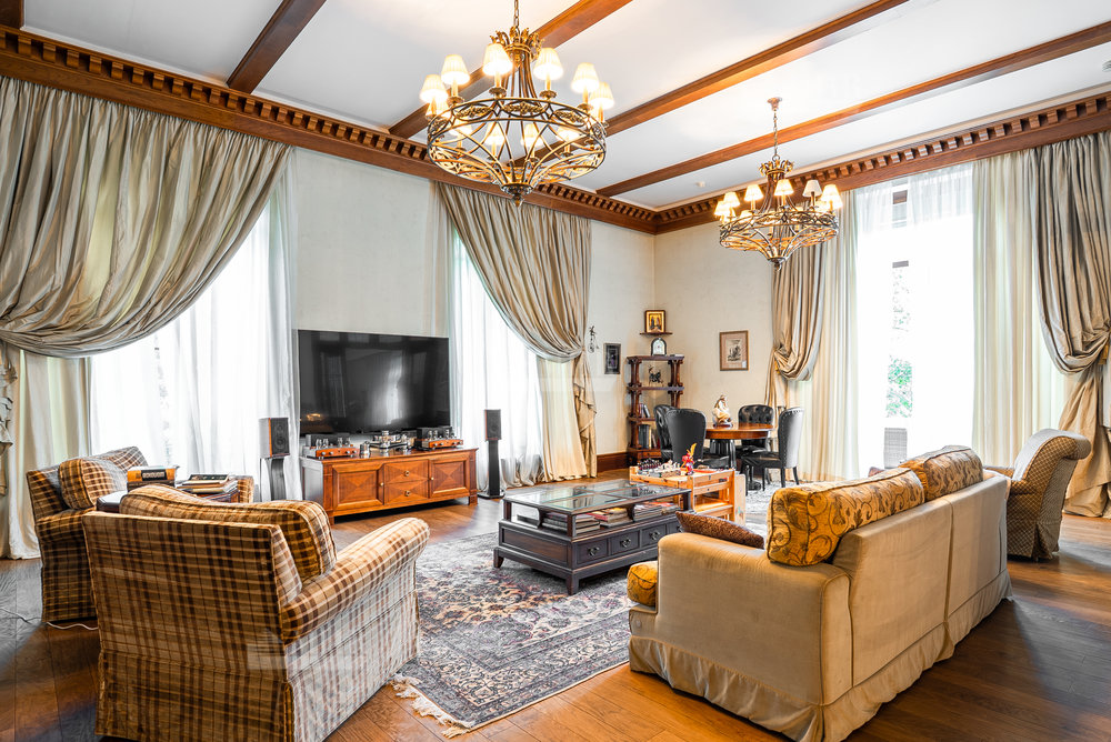 Уютный и тёплый дом, интерьер в классическом стиле с элементами эклектики, со вкусом подобранная мебель и предметы декора, планировка с максимальным уважением к личному пространству каждого члена семьи, гостей дома и обслуживающего персонала.