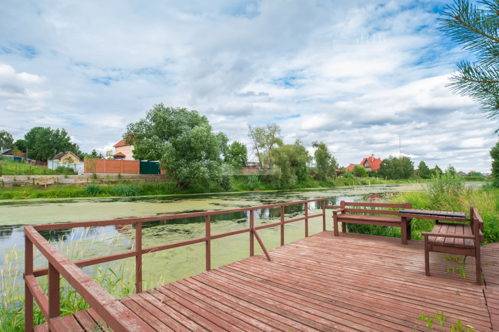 Роскошный новый дом в деревне Покровское, у реки, под ключ с мебелью. 23 км МКАД по Ново-Рижскому шоссе. На участке плодовые деревья, сортовые цветы, два бассейна и гостевой дом 80 м2. Потрясающий вид на реку.