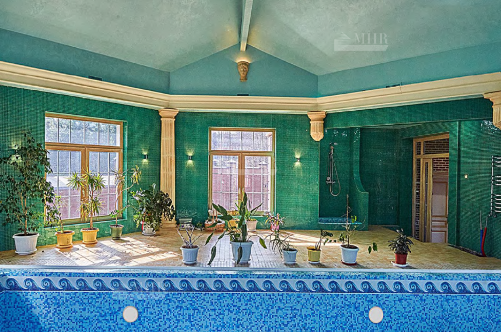 1-й этаж: прихожая, просторный холл, гостевой санузел, гостиная с камином с выходом на большую террасу, кухня-столовая, парадная столовая, гостевая спальня с гардеробной и санузлом, зимний сад, постирочная, зона SPA с переливным бассейном с противотоком, сауна, комната отдыха, санузел.