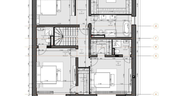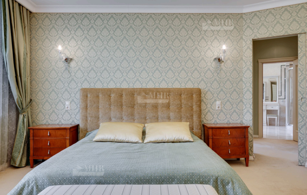 2-й этаж: мастер-блок: спальня с выходом на балкон, гардеробная, ванная комната; спальня с ванной комнатой и гардеробной, детская с ванной и гардеробной.