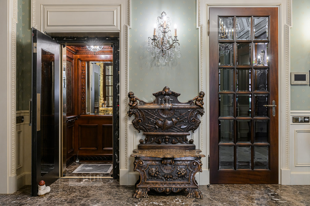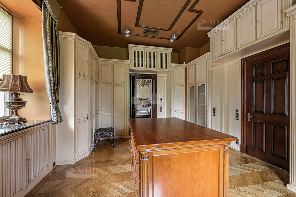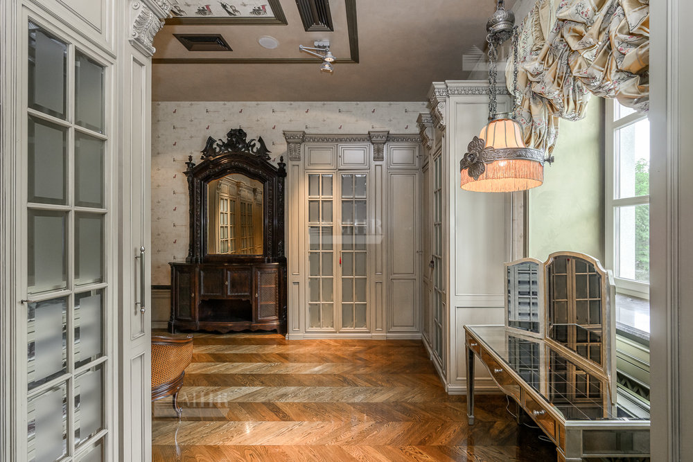 2-й этаж: холл, лифт, малая кухня, хозяйский блок: кабинет, спальня с балконом, ванная комната, 2 гардеробные; спальня с ванной с с/у и гардеробом.
