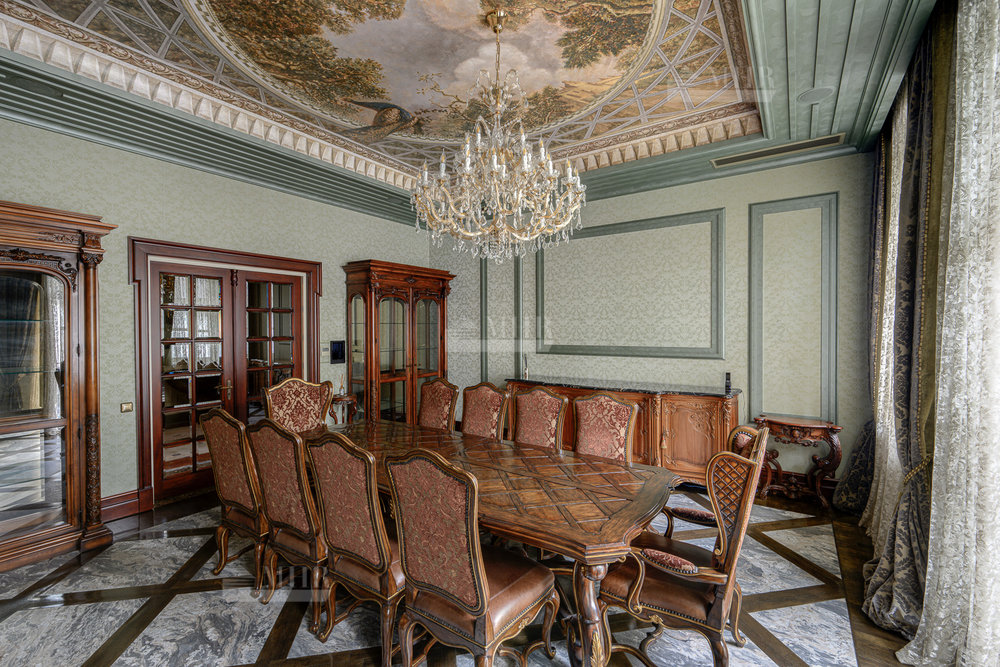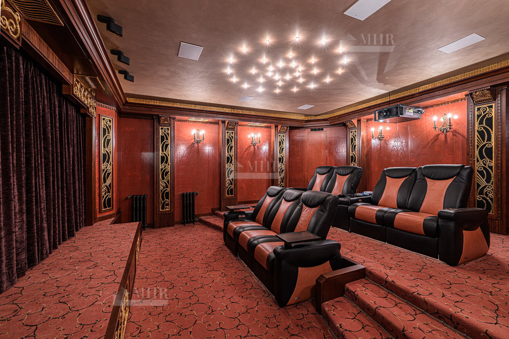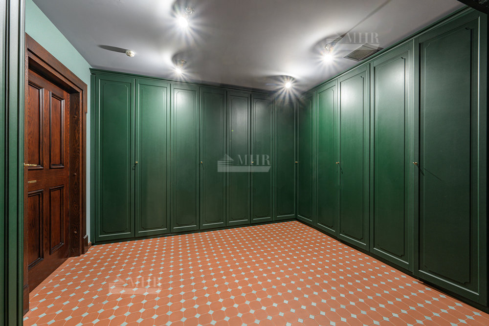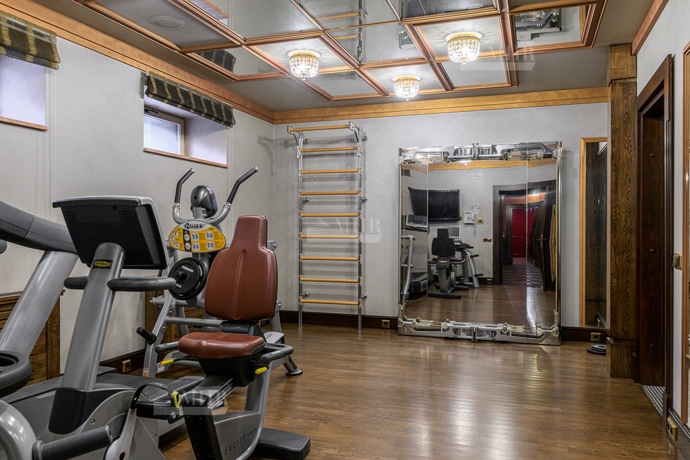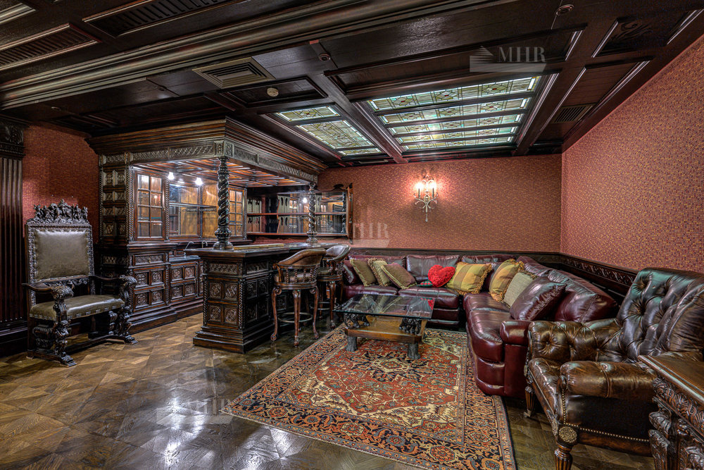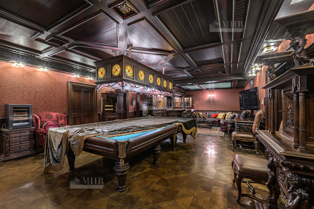 Цокольный этаж: бильярдная, домашний кинотеатр, сезонная гардеробная, гостевая спальня, с/у, спортзал, гардеробная с хранением для шуб, рабочая кухня с отдельным доступом для персонала, котельная.