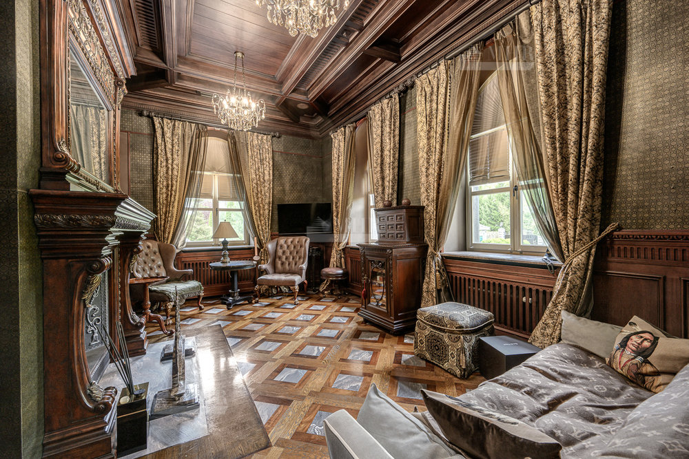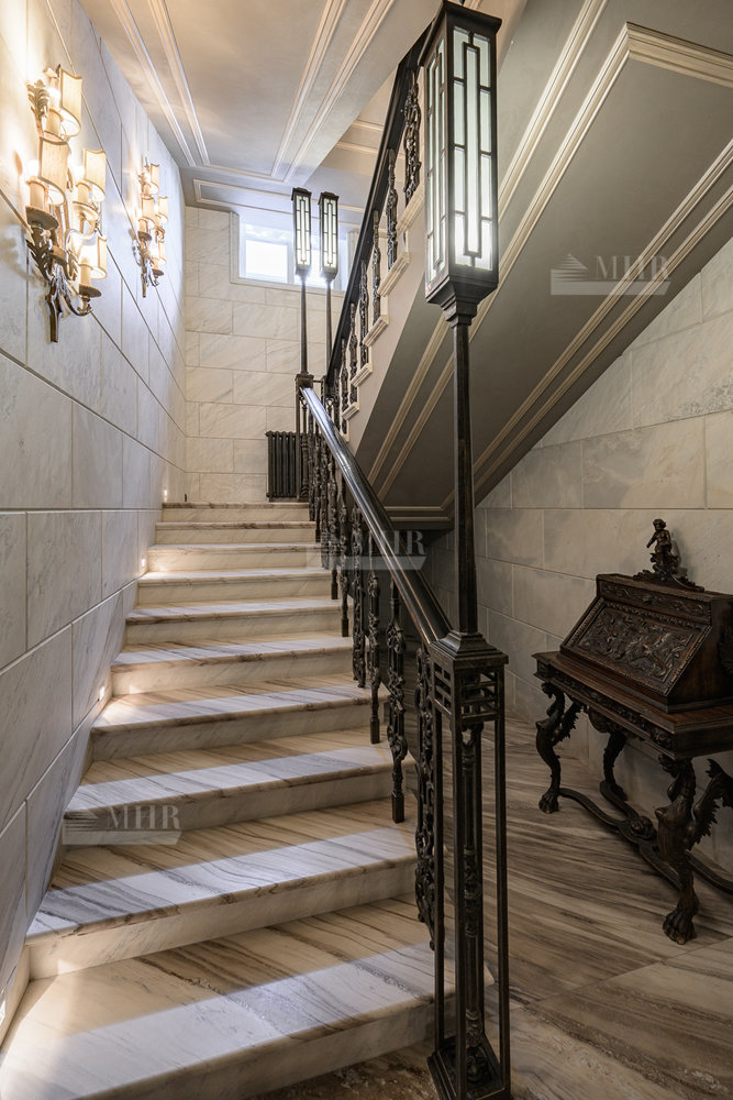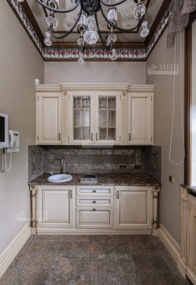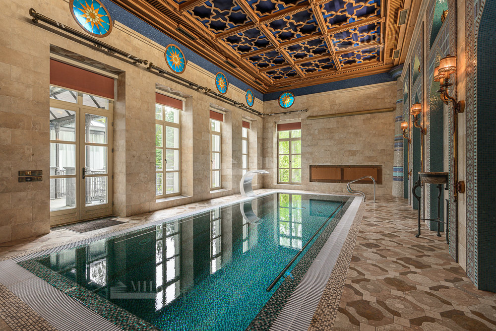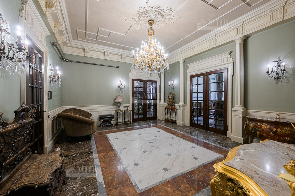 Цокольный этаж: бильярдная, домашний кинотеатр, сезонная гардеробная, гостевая спальня, с/у, спортзал, гардеробная с хранением для шуб, рабочая кухня с отдельным доступом для персонала, котельная.