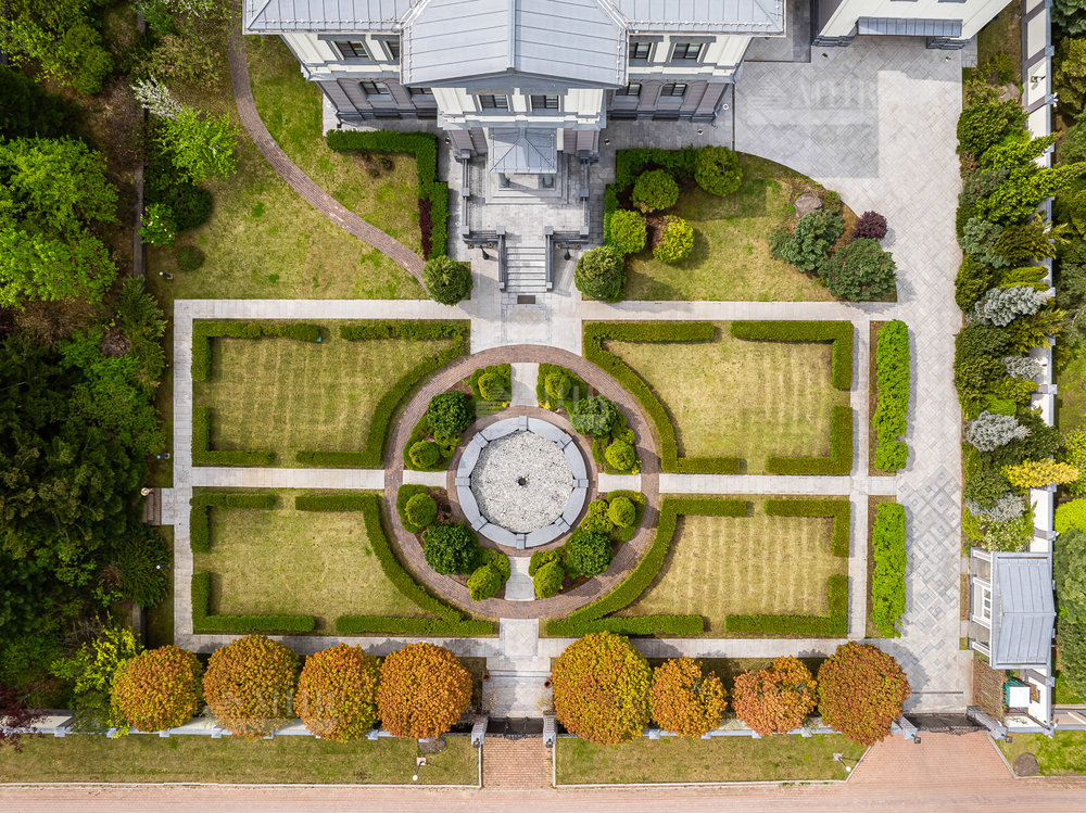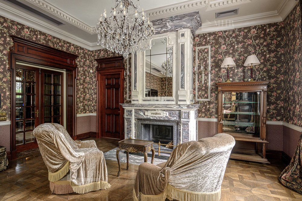 1-й этаж: прихожая, холл, лифт, гардеробная, с/у, сигарная с камином, гостиная с камином, кабинет, столовая с выходом на застекленную террасу, кухня парадная с лифтом подачи, кладовая для персонала, СПА-зона, гараж, блок персонала;