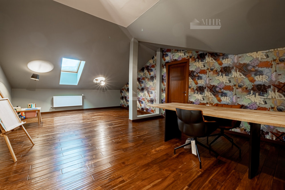 Мансарда: тв-зона отдыха, 2 спальни, 2 с/у, мастерская.