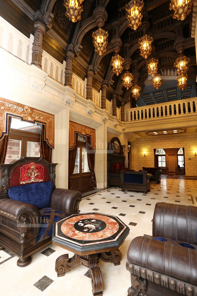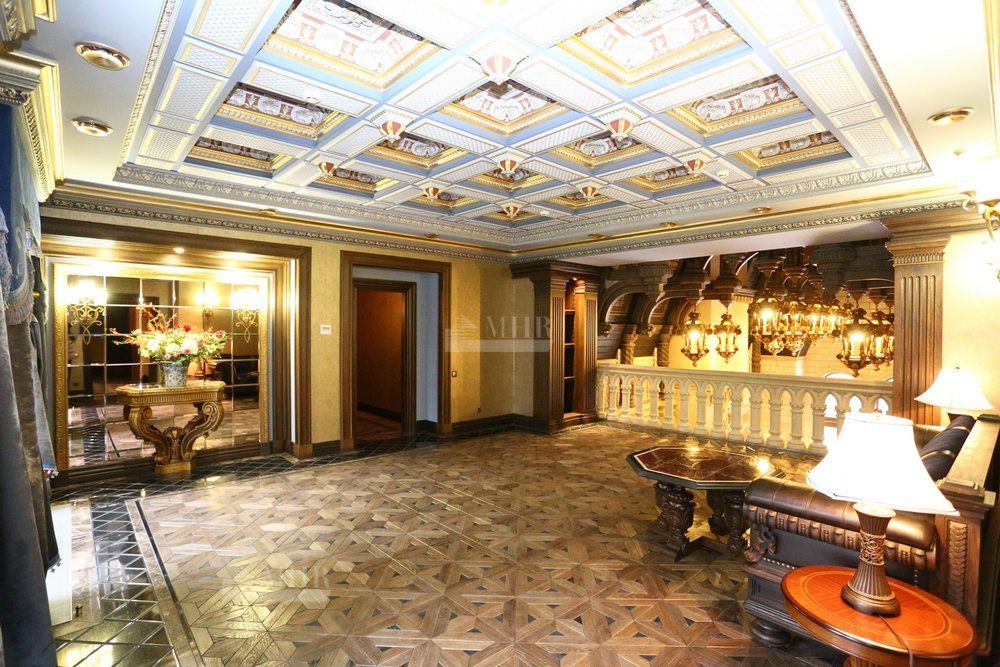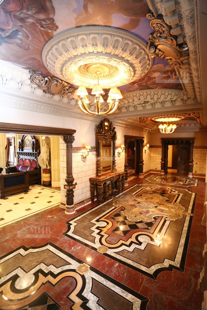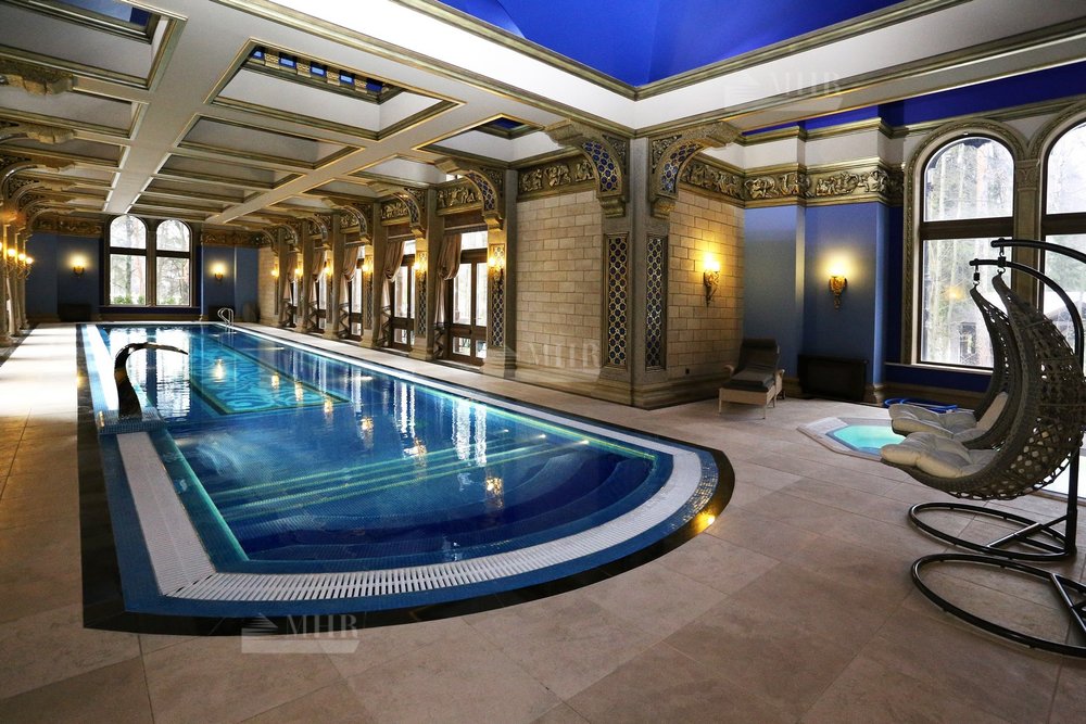 1 этаж - холл, гардеробная, парадная столовая, с/у, кухня, лифт, малая гостиная, с/у, кабинет, зимний сад, винный погреб, бильярдная, с/у, бассейн 20 х 3.6 м , сауна, хаммам, тренажерный зал, гостевая спальня с с/у, котельная.