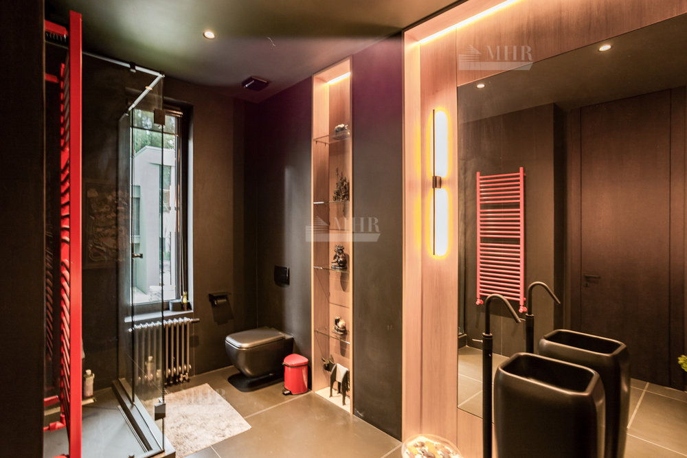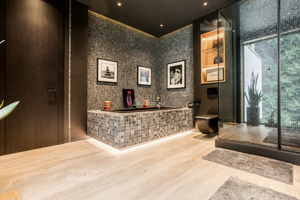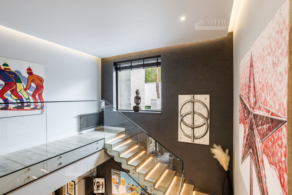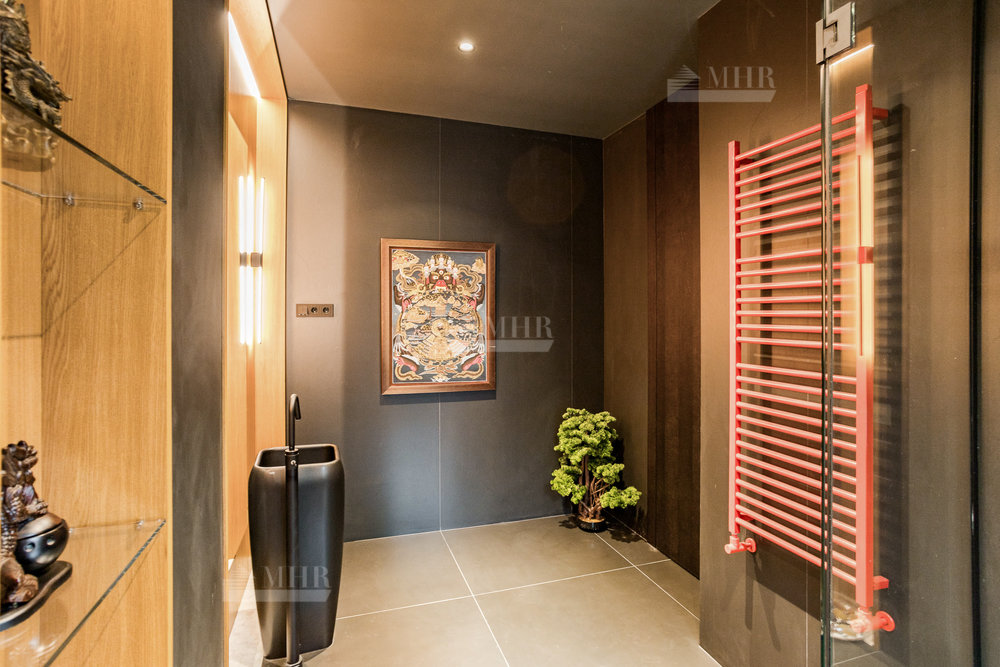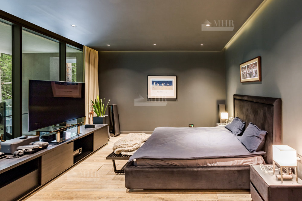 2 этаж: 3 спальни (мастер-спальня - 33 м2.,  2 другие 30 м2. и 21м2.), все со своим санузлами и гардеробными (плюс дополнительная), 2  больших балкона и огромная открытая терраса 178 кв.м.