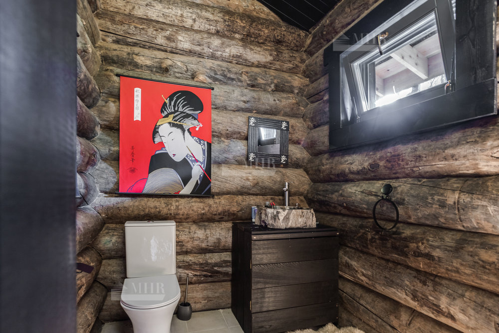 На участке имеется русская баня площадью 110 м2., построена из бревна сосны (Кело), включает в себя гостиную, кухню, парную из кедра, кедровую бочку, санузел и отдельную гостевую спальню. Отдельно на воздухе купель с дровяным подогревом.