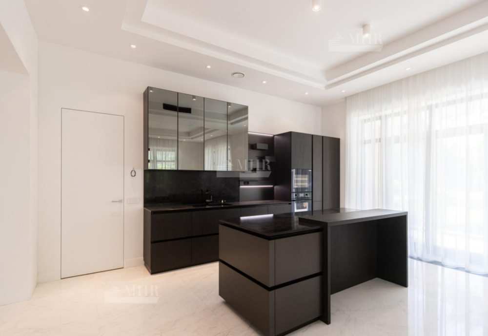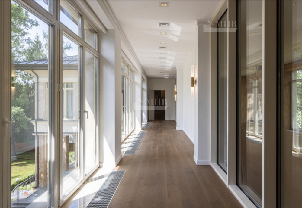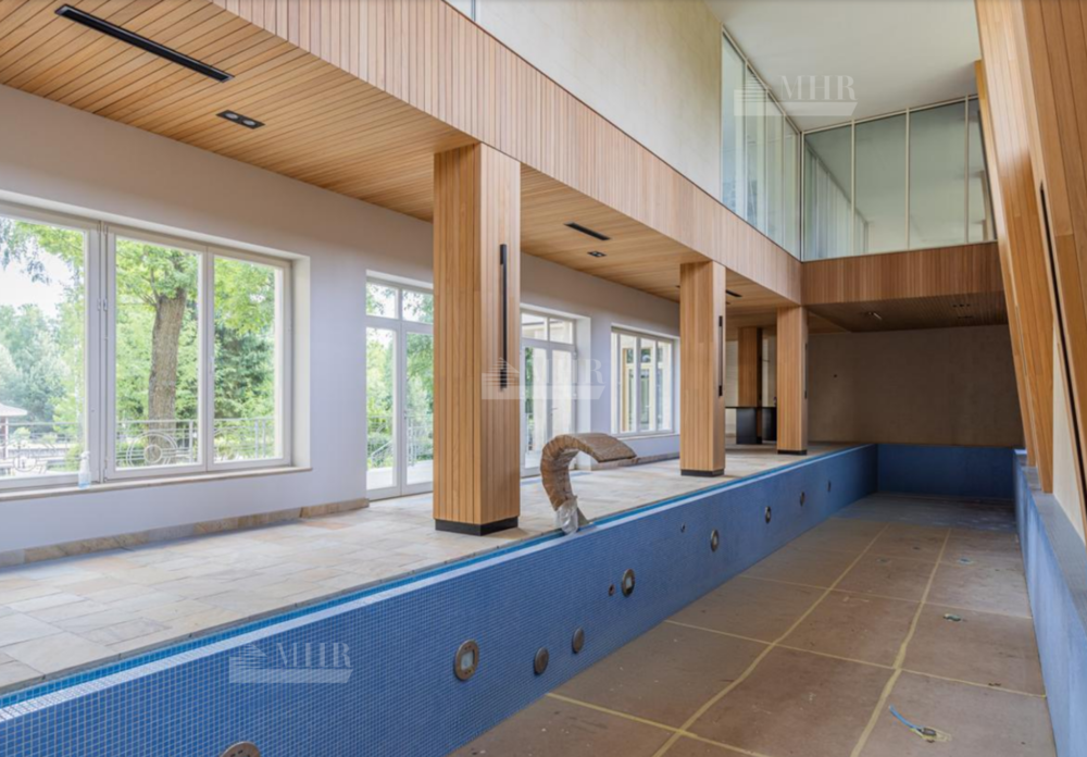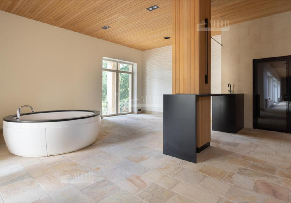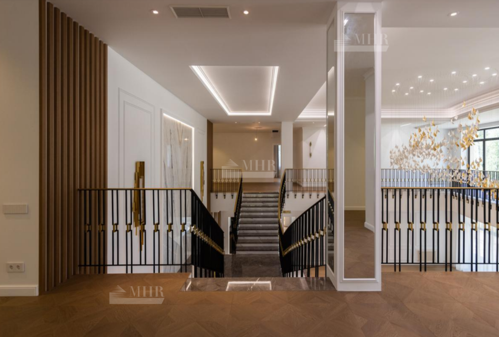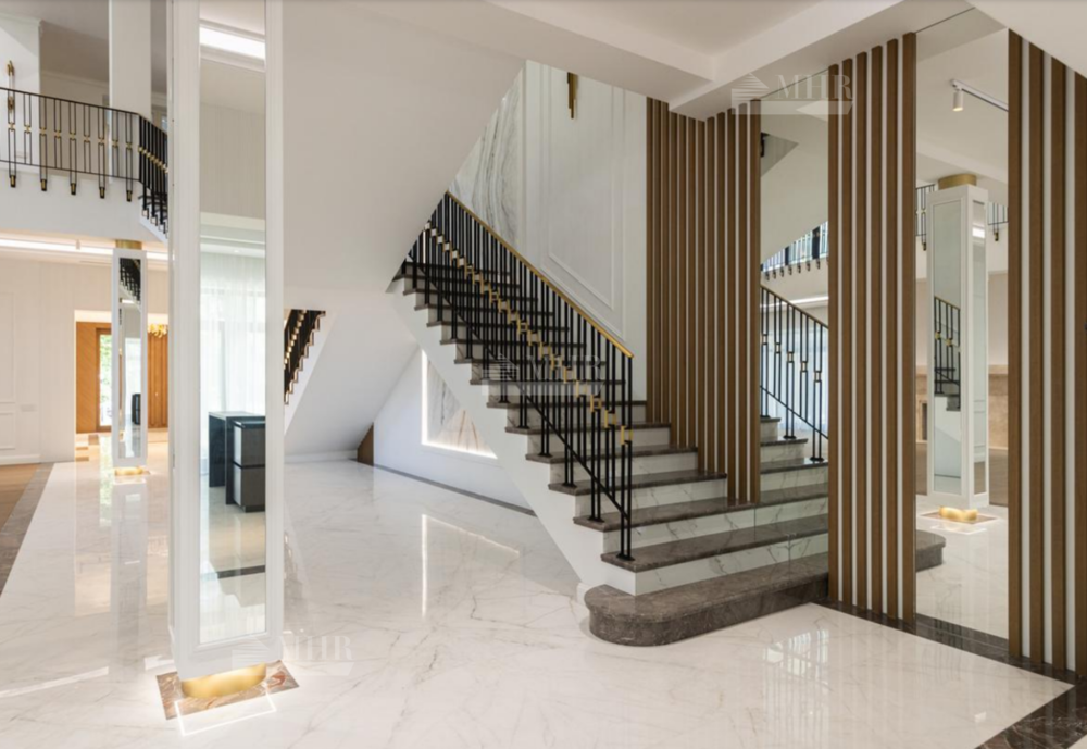 Великолепный каминный зал и хозяйская кухня-столовая идеально подходят для семейных ужинов и торжественных приемов. Так в доме танцевальный зал и SPA-зона с 23-метровым бассейном. В хозяйственном блоке есть все необходимое для удобства, а кабинет с камином и выходом на террасу станет любимым местом для работы и отдыха. Гостевая часть дома оборудована кухней и спальнями, обеспечивая комфортное проживание гостей. На цокольном этаже расположены спортивный зал, душевая, котельная, сауна, хаммам, санузел, гардеробная и дополнительные душевые. Отделка в доме произведена высококачественными материалами. Кухня представлена брендом Scavolini, бытовая техника — от Küppersbsuch. Простор и свет пронизывают каждый уголок дома, а функционально удобная планировка предусматривает комфортное проживание для большой семьи.