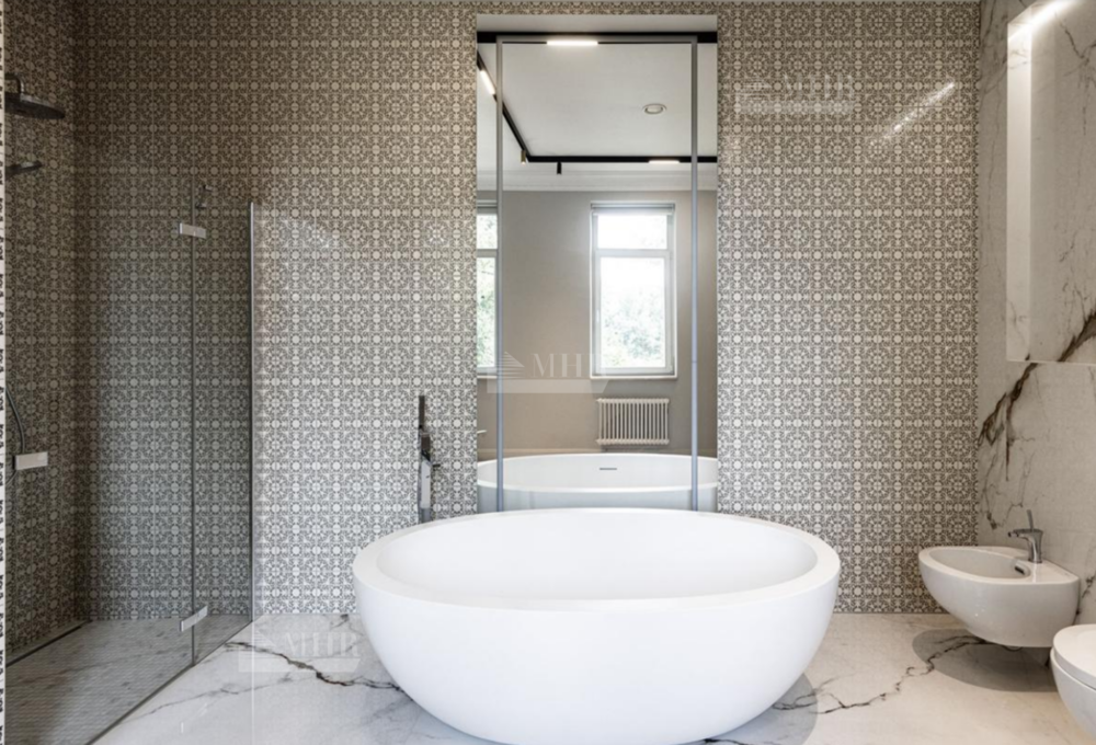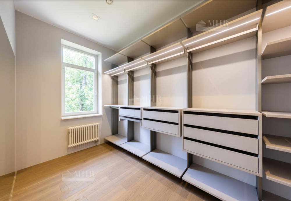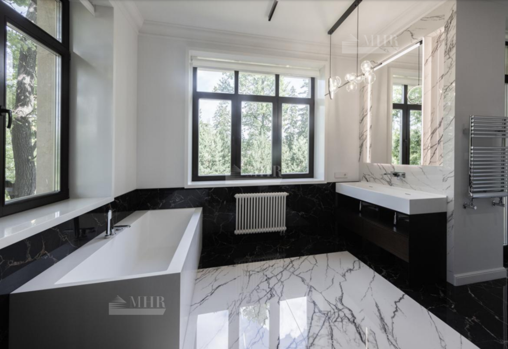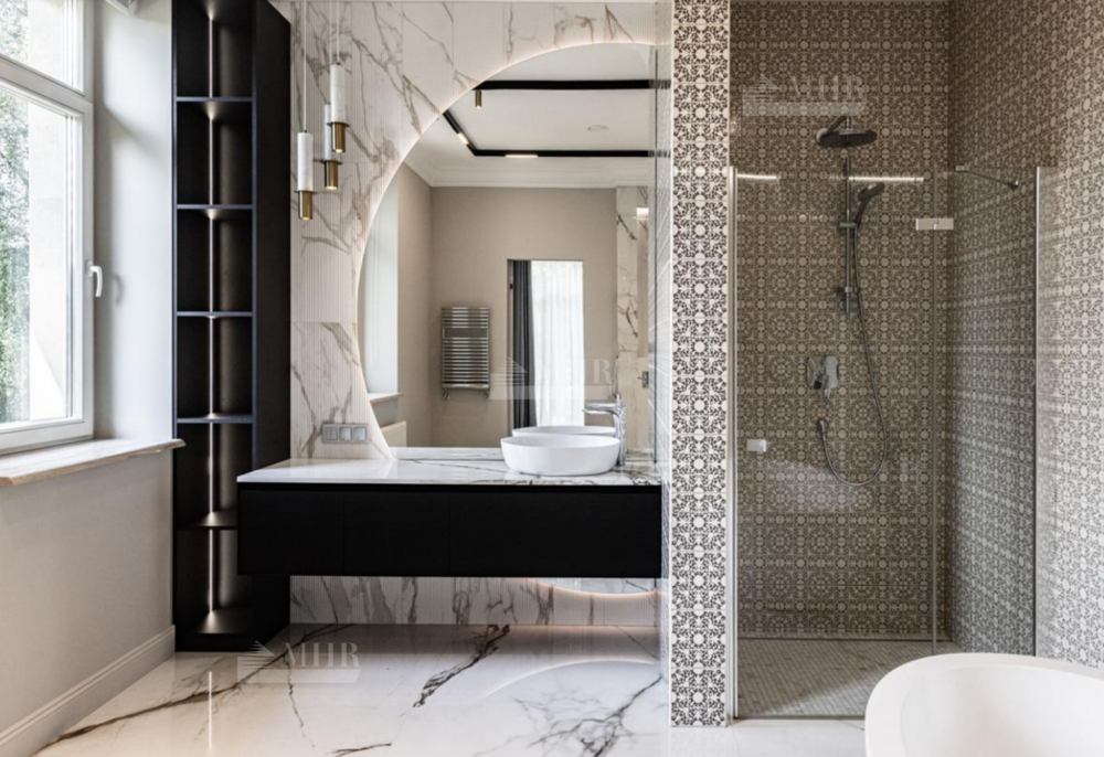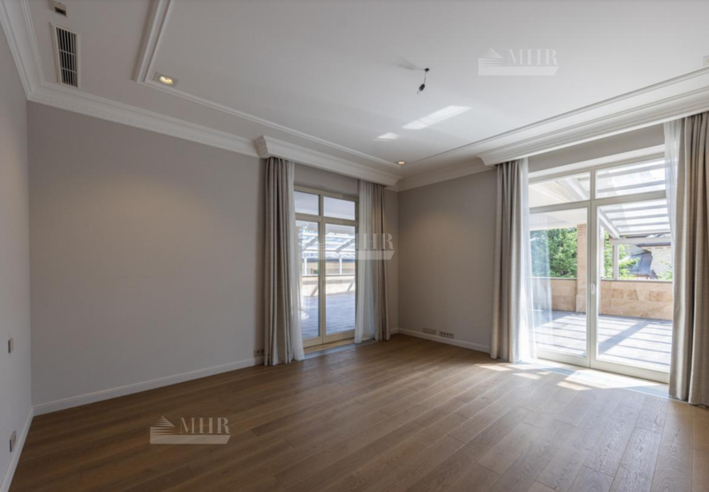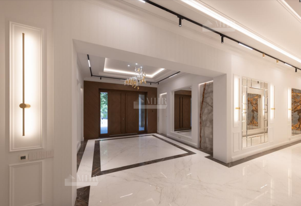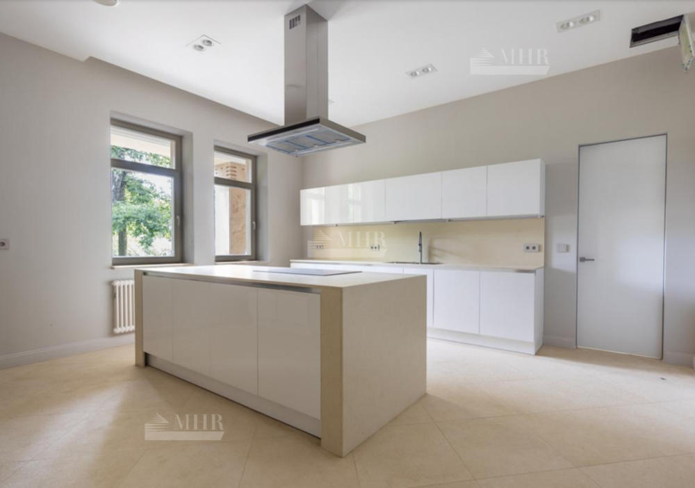 Великолепный каминный зал и хозяйская кухня-столовая идеально подходят для семейных ужинов и торжественных приемов. Так в доме танцевальный зал и SPA-зона с 23-метровым бассейном. В хозяйственном блоке есть все необходимое для удобства, а кабинет с камином и выходом на террасу станет любимым местом для работы и отдыха. Гостевая часть дома оборудована кухней и спальнями, обеспечивая комфортное проживание гостей. На цокольном этаже расположены спортивный зал, душевая, котельная, сауна, хаммам, санузел, гардеробная и дополнительные душевые. Отделка в доме произведена высококачественными материалами. Кухня представлена брендом Scavolini, бытовая техника — от Küppersbsuch. Простор и свет пронизывают каждый уголок дома, а функционально удобная планировка предусматривает комфортное проживание для большой семьи.