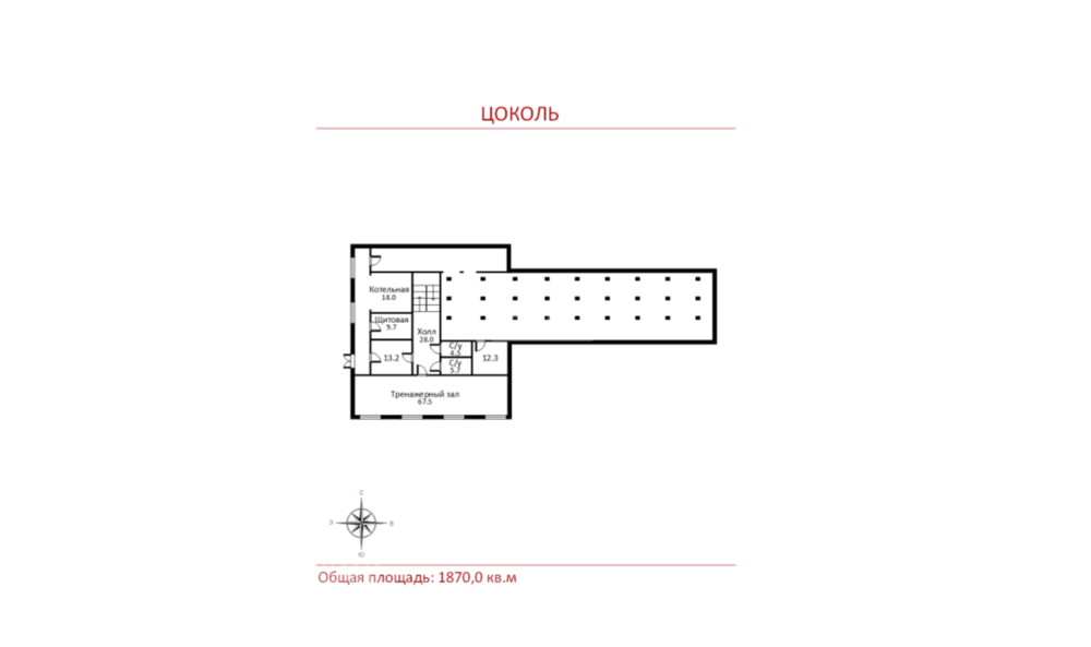 Цоколь: с/у, спортивный зал, душевая, котельная, чаша бассейна (техническая), су, подсобное помещение;