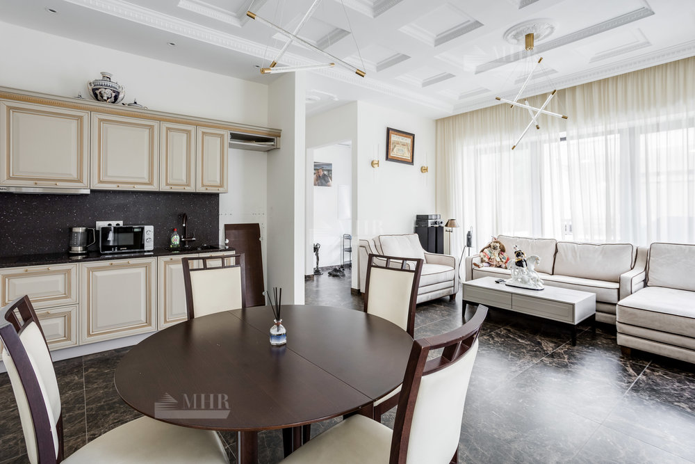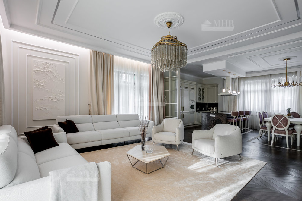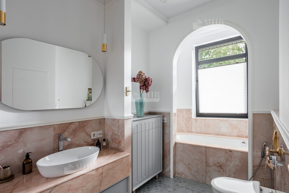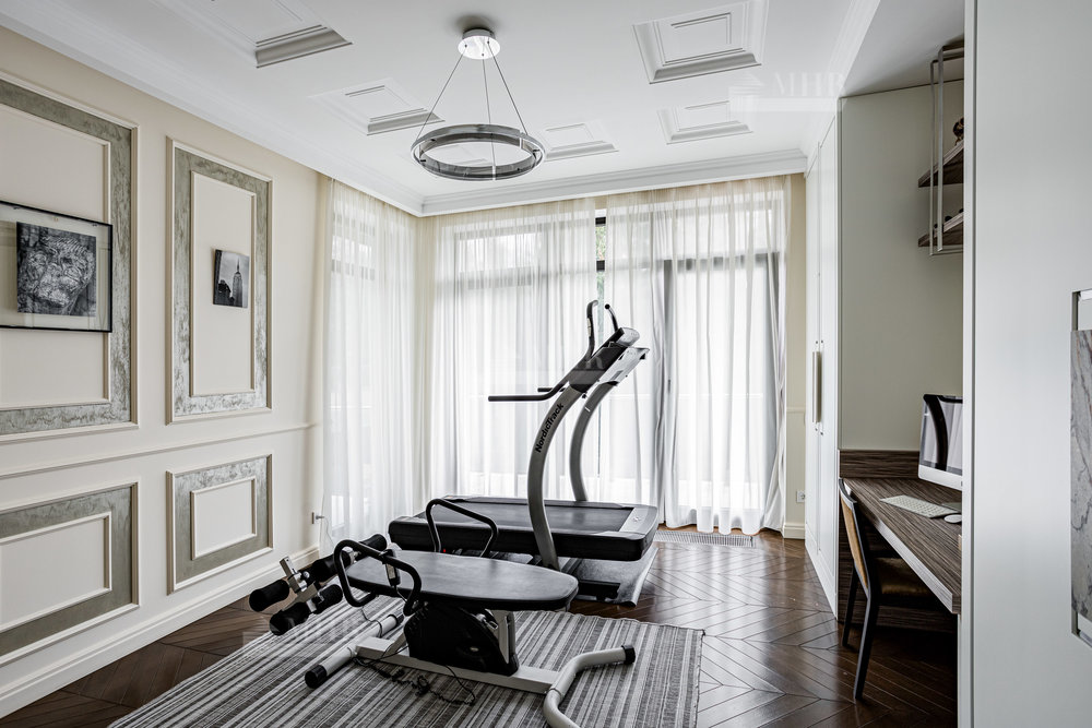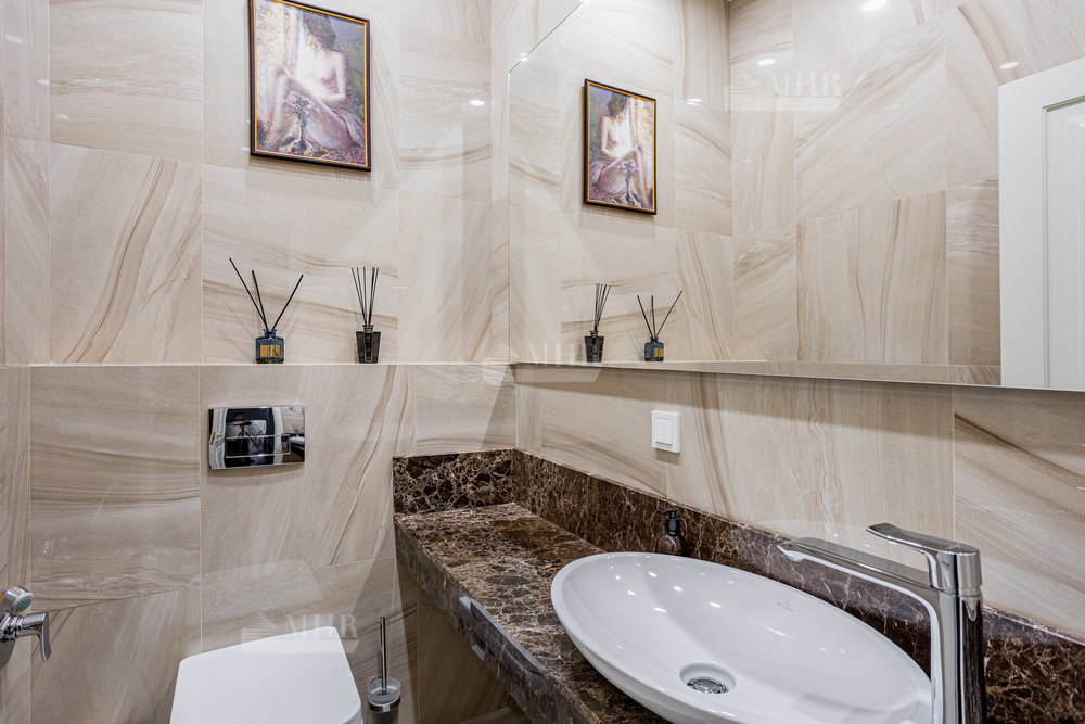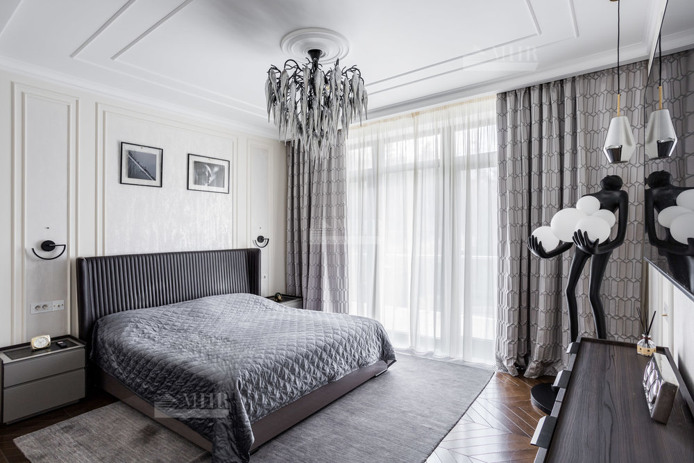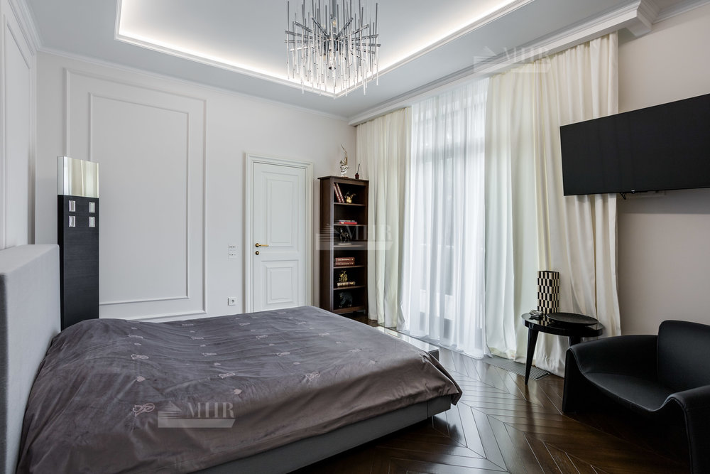 Интерьер выполнен из натуральных дорогостоящих материалов, установлена сантехника Villeroy&Boch, межкомнатные двери Union, кухня и гардеробные от компании Verona mobili, кондиционирование Daikin, окна Shuko. На первом этаже 2 спальни!