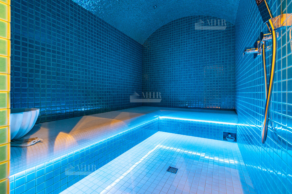Отдельный дом со SPA-зоной: бассейн, хаммам и комната для отдыха и кухней.