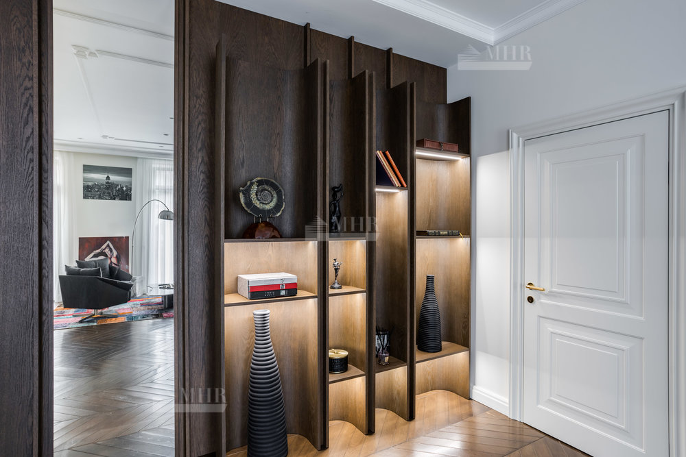 2 этаж: холл с зоной библиотеки, мастер-спальня с с/у и гардеробной, кабинет, две спальни с с/у и гардеробными. Из каждой спальни выход на балкон.