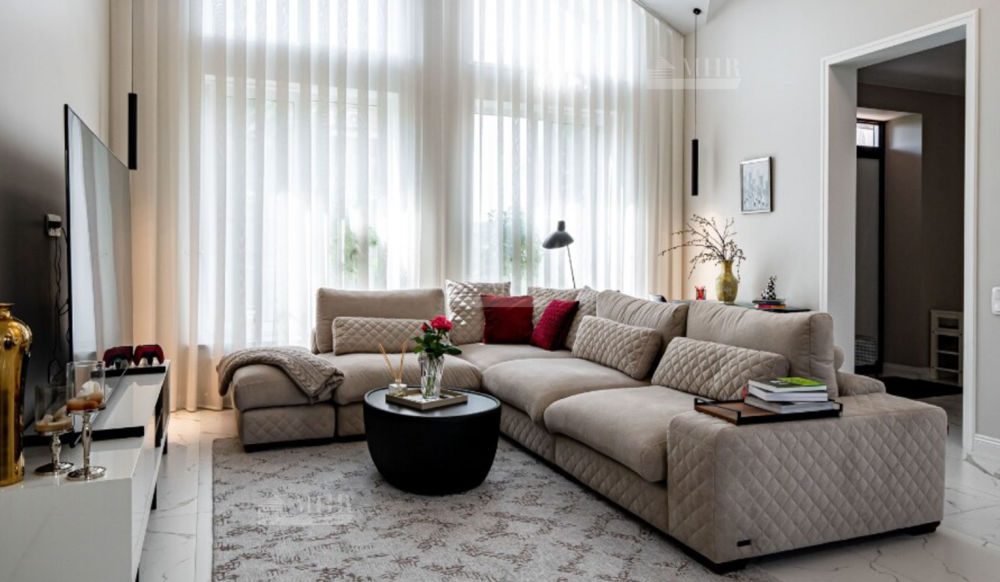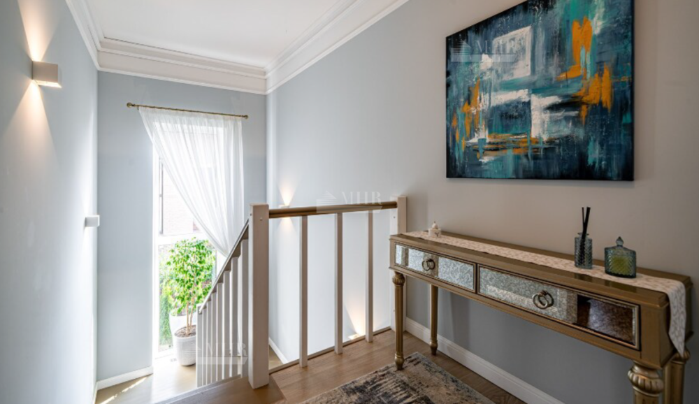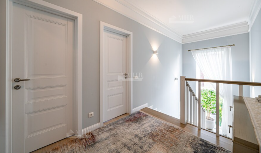 В домах: 5 спален, 4 санузла, 3 гардеробные, 2 кухни, 2 гостиные-столовые, баня, зимний сад. Качественное строительство- красный глиняный кирпич, фасад из бельгийского кирпича Wienerberger, высота потолков до 5 метров.