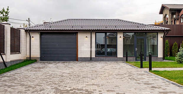 Выполнено ограждение по периметру, установлены калитка и автоматические ворота. Перед домом организована площадка для парковки до 5-ти автомобилей.