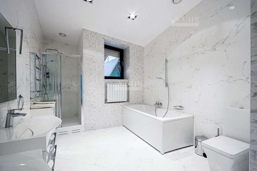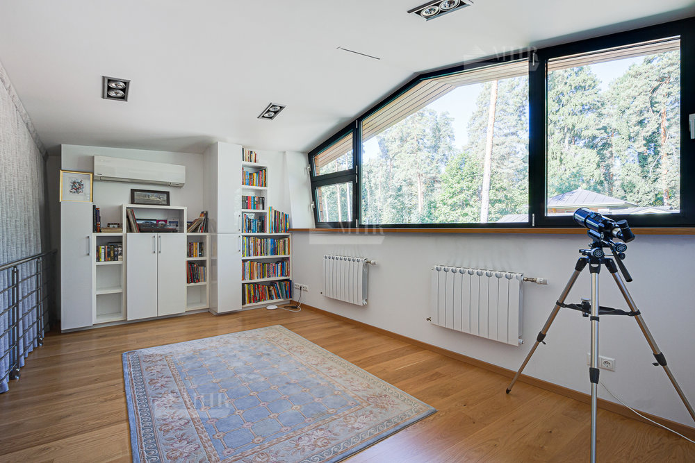 1 этаж: холл, гардеробная комната, с/у, кухня-столовая, гостиная с выходом на террасу, библиотека, гостевая спальня со своей ванной комнатой, спальня с душевой комнатой, постирочная.