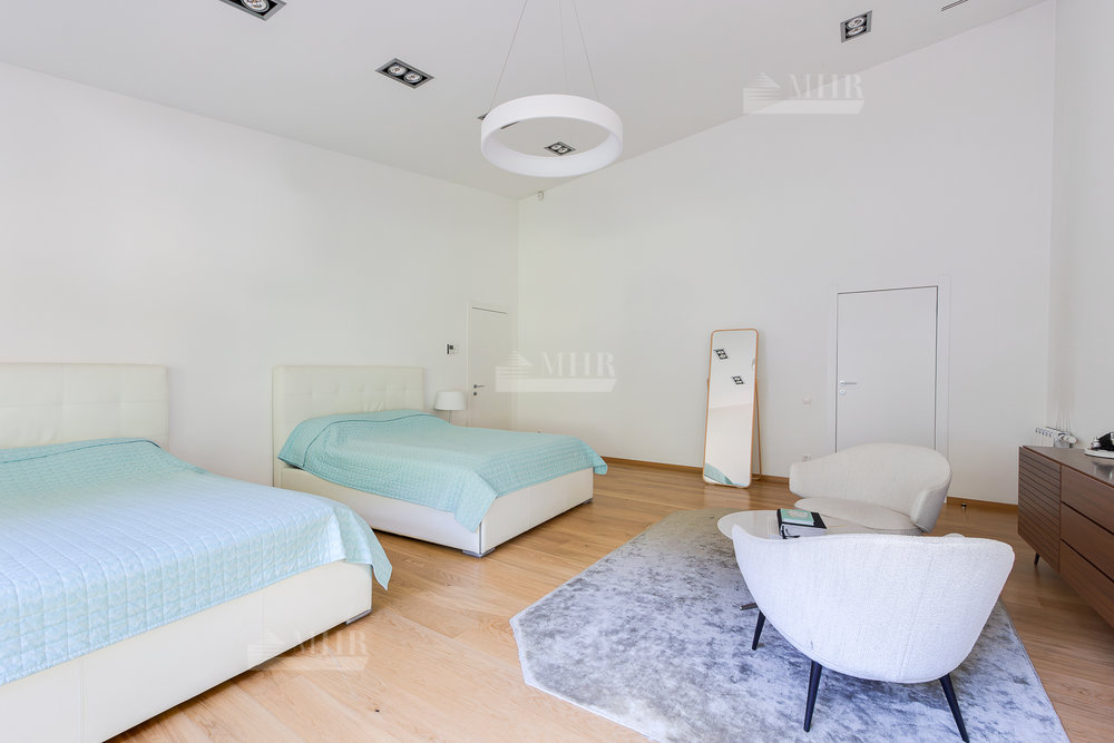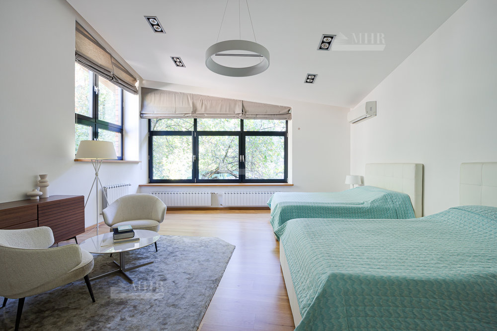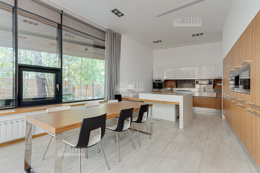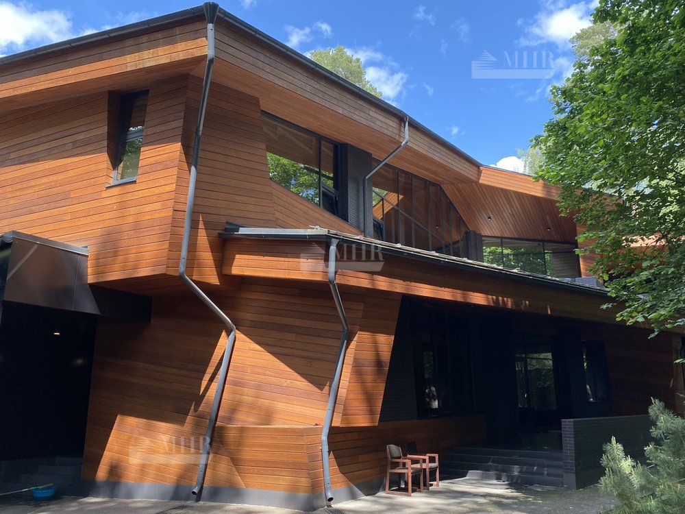 К покупке предлагается современный дом на Николиной Горе, который входит в топ 100 домов по версии журнала AD architecture. Главной задачей и идеей проекта стало представить современную архитектуру загородного дома через призму локальных традиций – свойственные этим дачным местам элементы, такие как скатная кровля, деревянная отделка фасада и клинкерный кирпич, сочетаются с жесткой и динамичной геометрией фасадов и масштабным витражным остеклением.