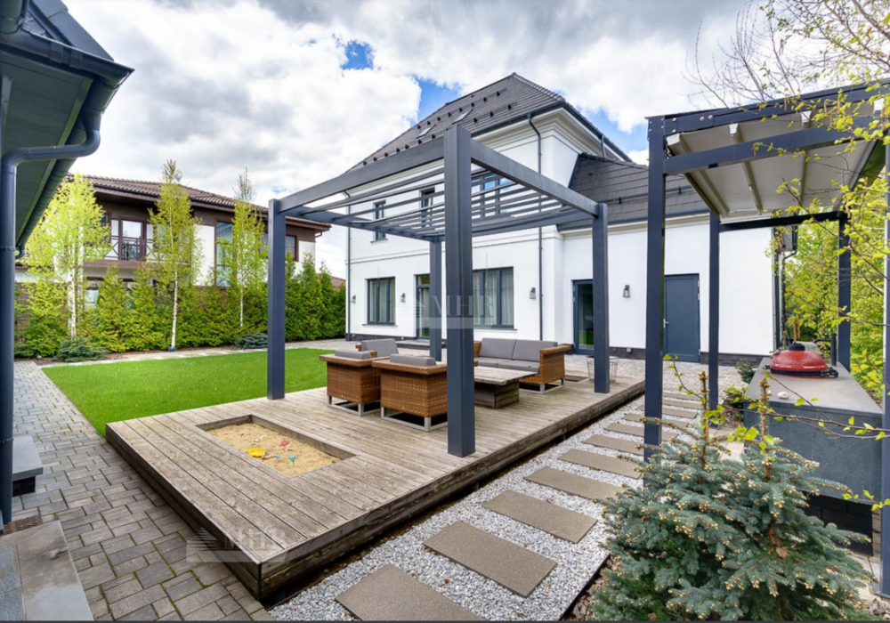 На участке обустроена уютная зона барбекю и располагается русская баня.