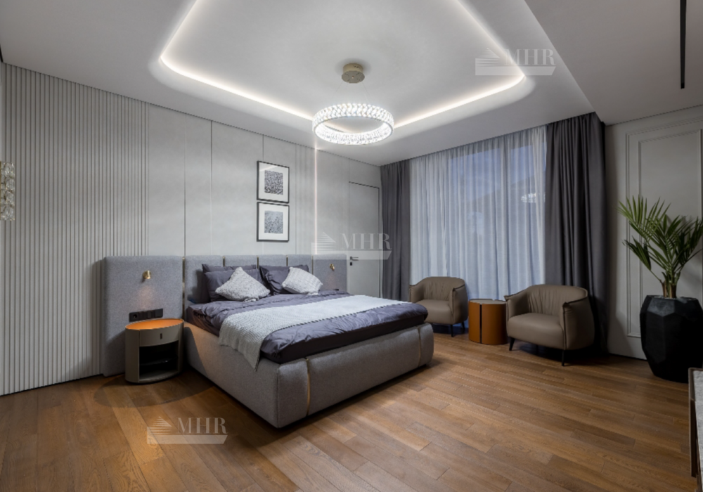 2-й этаж: хозяйская спальня с с/у и 2гардеробными, 2 спальни с с/у и гардеробными, холл.