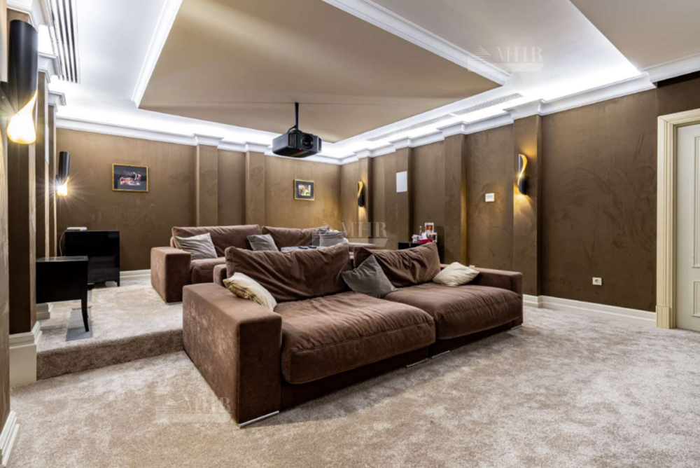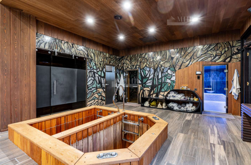 цоколь: гардеробная, постирочная, домашний кинотеатр, ванная комната, комнаты для бытовых нужд, бойлерная, оружейная комната, технические помещения вентиляции и бассейна, подземный проход в зону СПА;