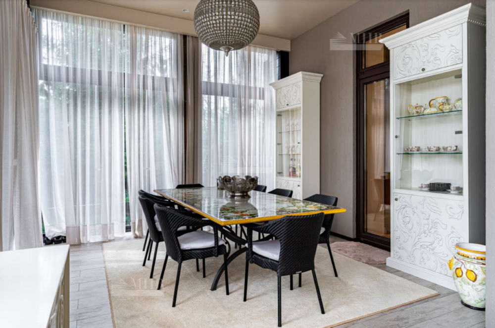 Предлагаем к продаже просторный современный дом "под ключ" с бассейном. Дом полностью меблирован, он имеет наиболее удачное расположение в коттеджном посёлке, так как в пешей доступности находится зелёная парковая зона.