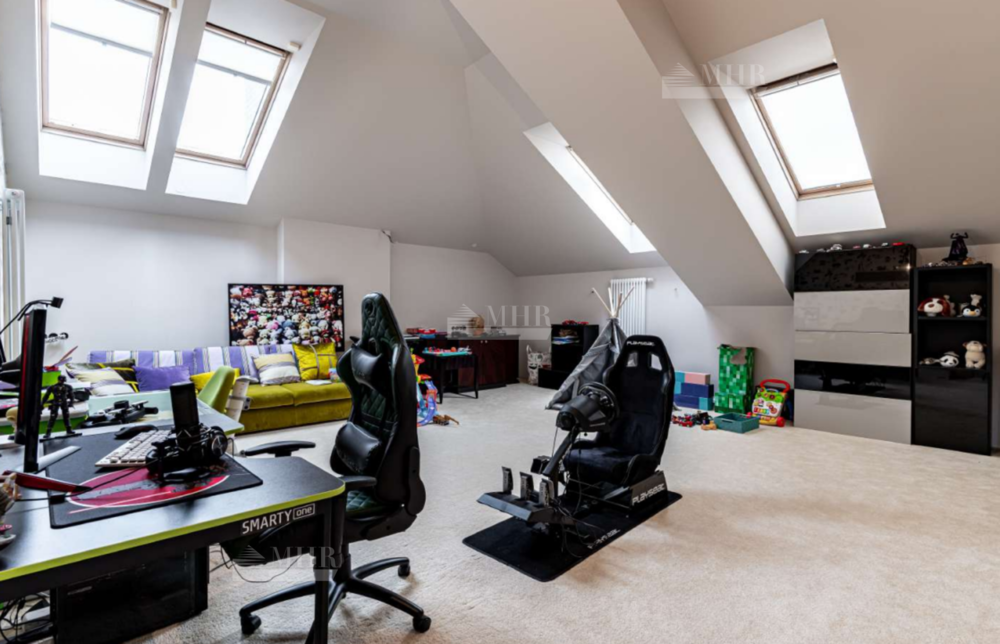 мансарда: большая игровая комната, 2 спальни с ванными комнатами, гардеробная, кабинет, комната хранения.