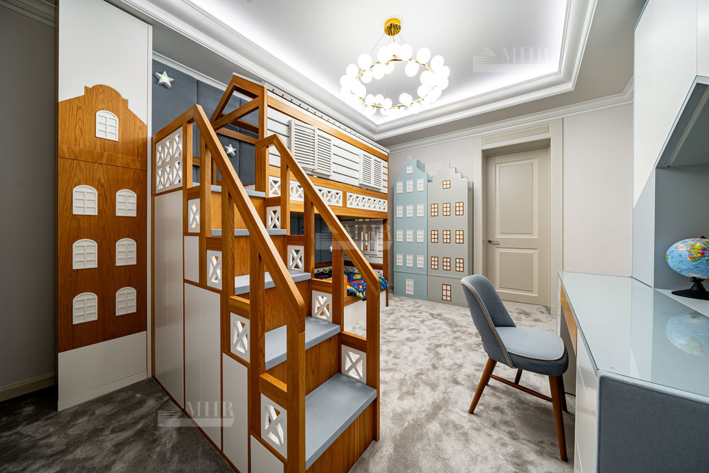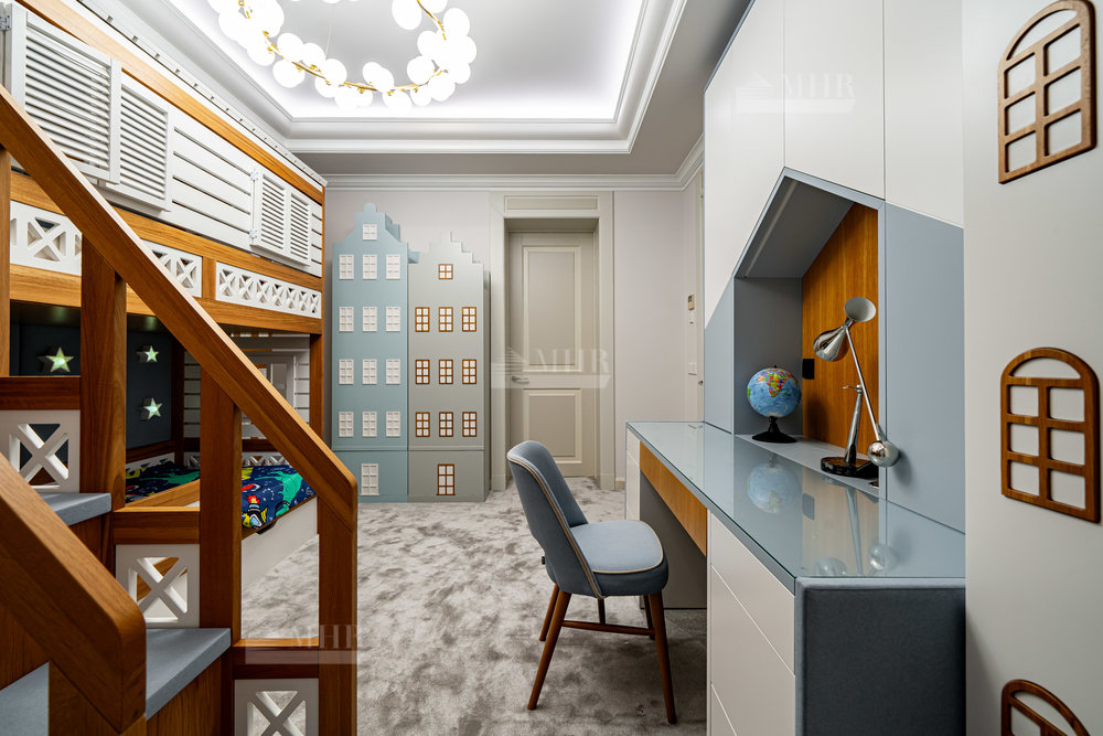2-й этаж: мастер-спальня с санузлом и просторной гардеробной и две детских спальни с санузлами и гардеробными.
