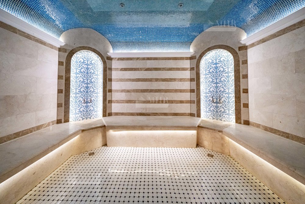 Цоколь: комната для персонала, санузел, хамам, баня, душевая, котельная, постирочная.