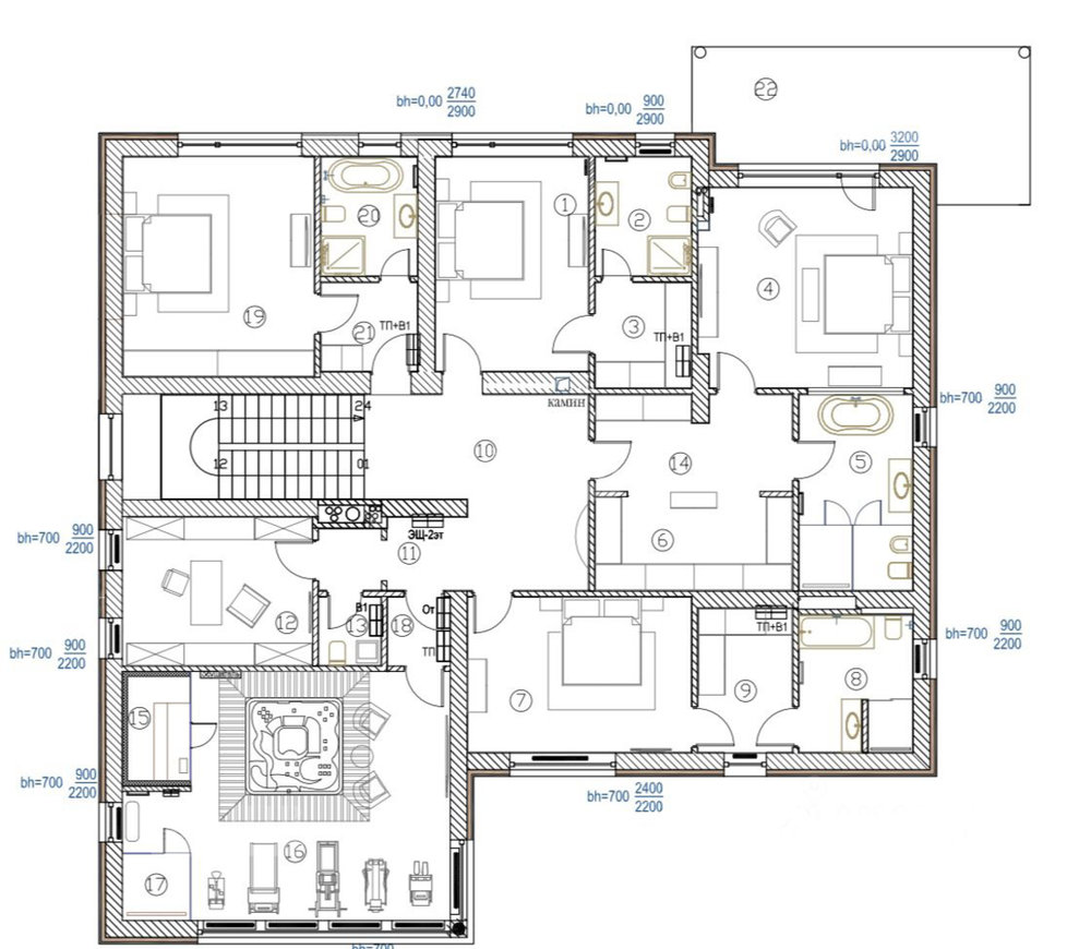 2 этаж: 4 спальни и каждая с гардеробной и санузлом, СПА-комплекс.