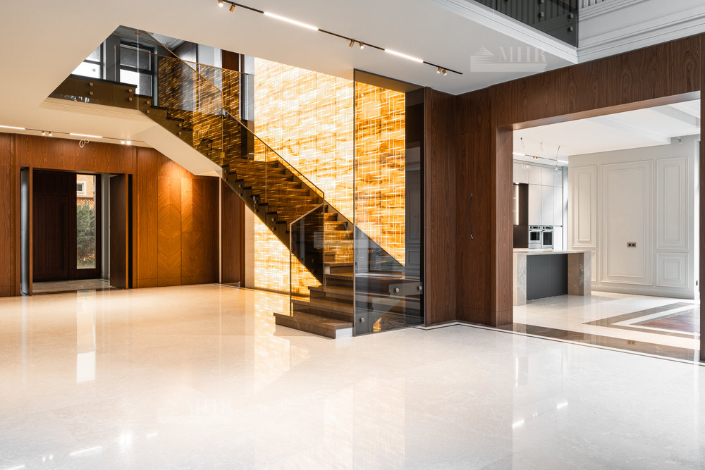 2-й этаж: просторный холл, коридор, 4 спальни со своими ванными и гардеробными комнатами, гостевая спальня, ванная комната.