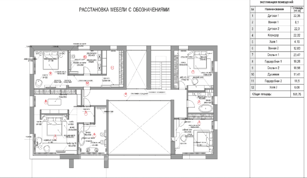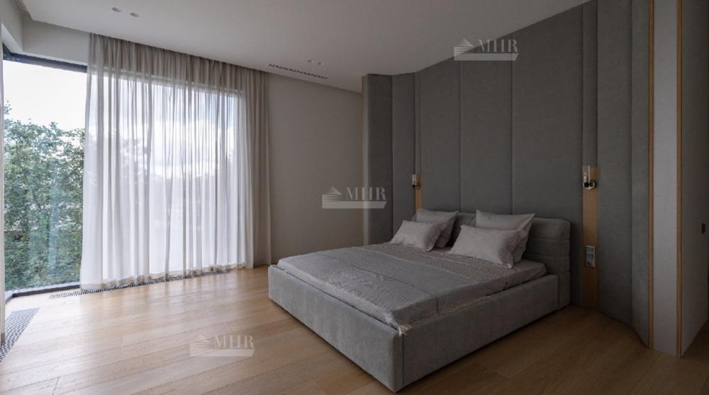 2-й этаж: мастер спальня с с/у и гардеробной, спальня с с/у и гардеробной комнатой, 2 детские комнаты с с/у и встроенными гардеробными.