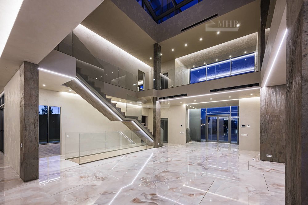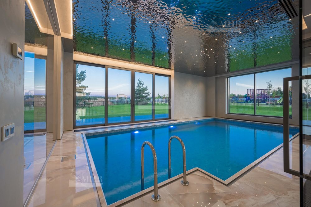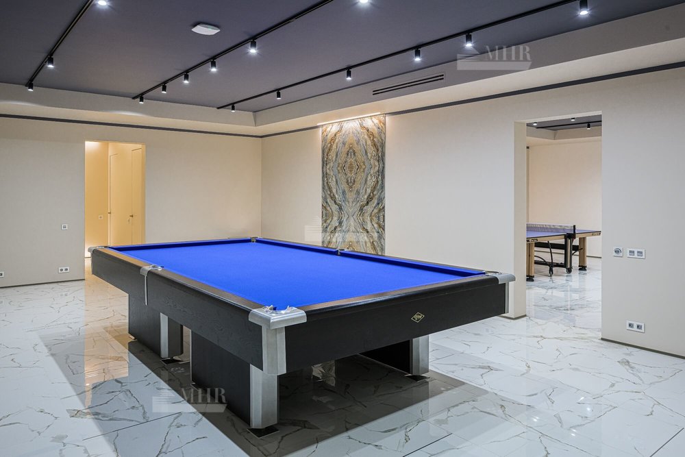 Особенности дома: шикарные хозяйские апартаменты, бассейн, сауна, кинотеатр, тренажерный зал, бильярдная, второй свет.