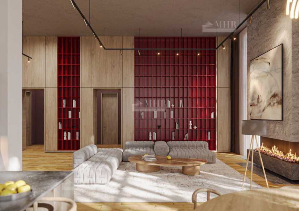 Планировка: просторная гостиная с камином,3 основных спальни и гостевая комната,  современная кухня-столовая и уютная терраса для отдыха на свежем воздухе, постирочная, вместительная гардеробная, котельная и подсобное помещение,3 с/у.