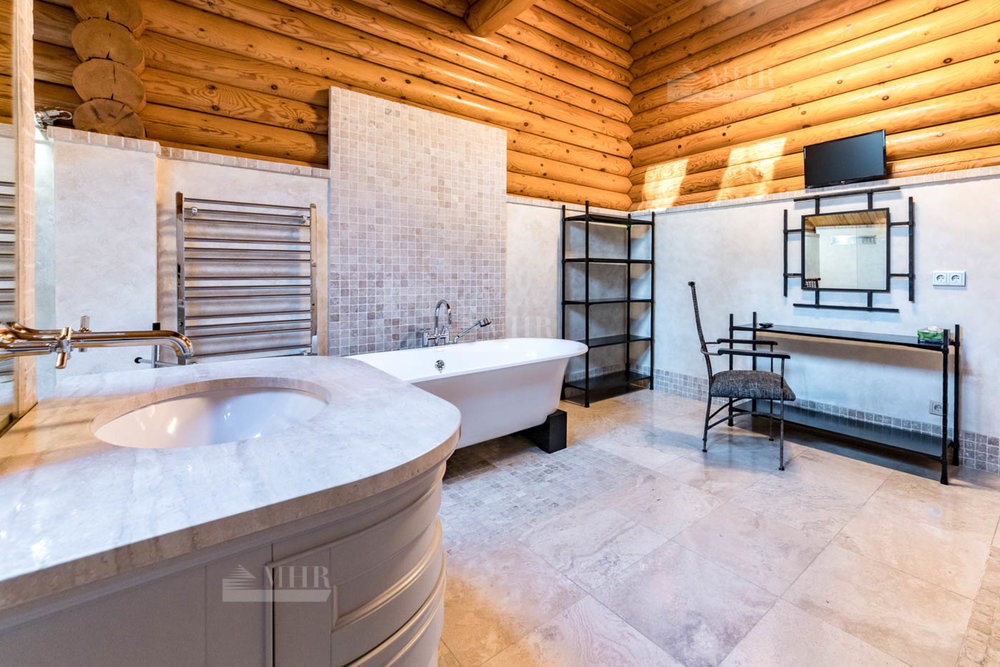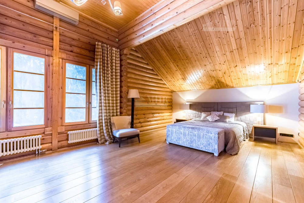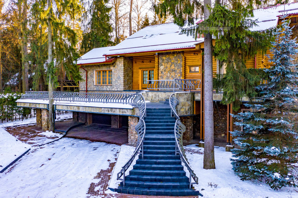 Стильный деревянный дом Honka на лесном участке в охраняемом коттеджном поселке с развитой инфраструктурой.