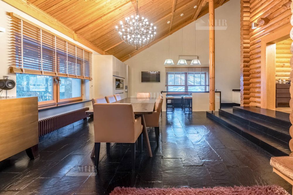 В интерьере дома невероятно гармонично сочетаются уют дерева и стильный минимализм современной мебели и материалов.
