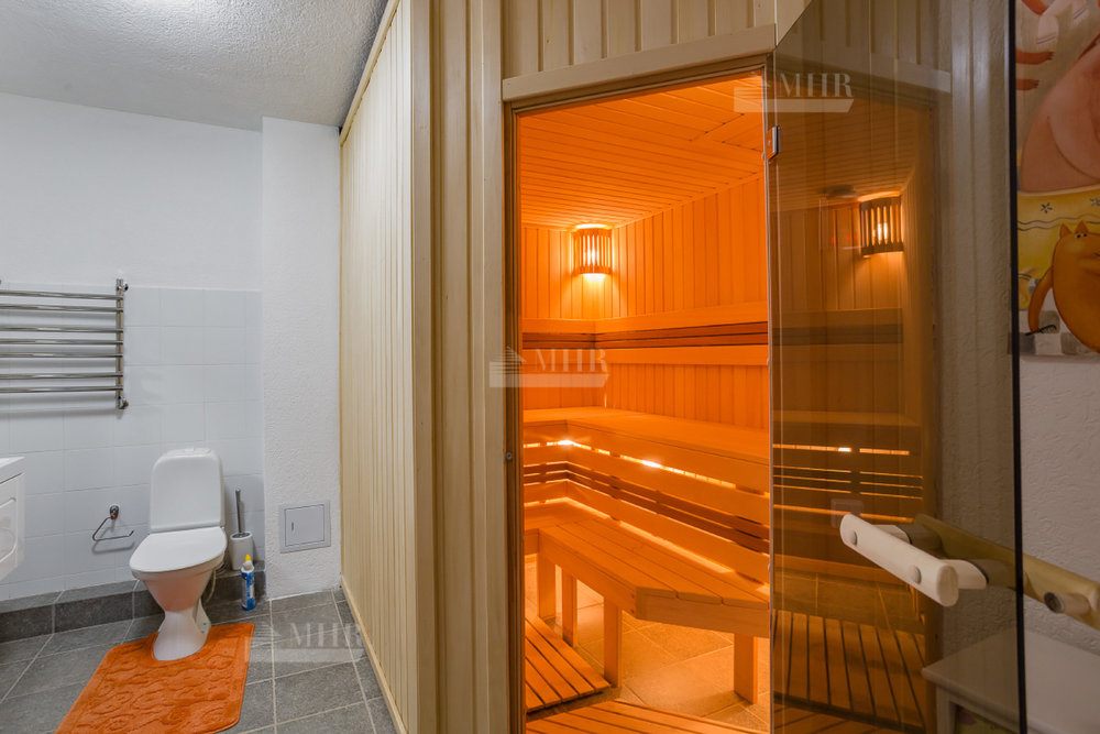 Цоколь: Спальня, кладовая, постирочная, бойлерная, помещение для персонала, сауна с душевой и с/у.