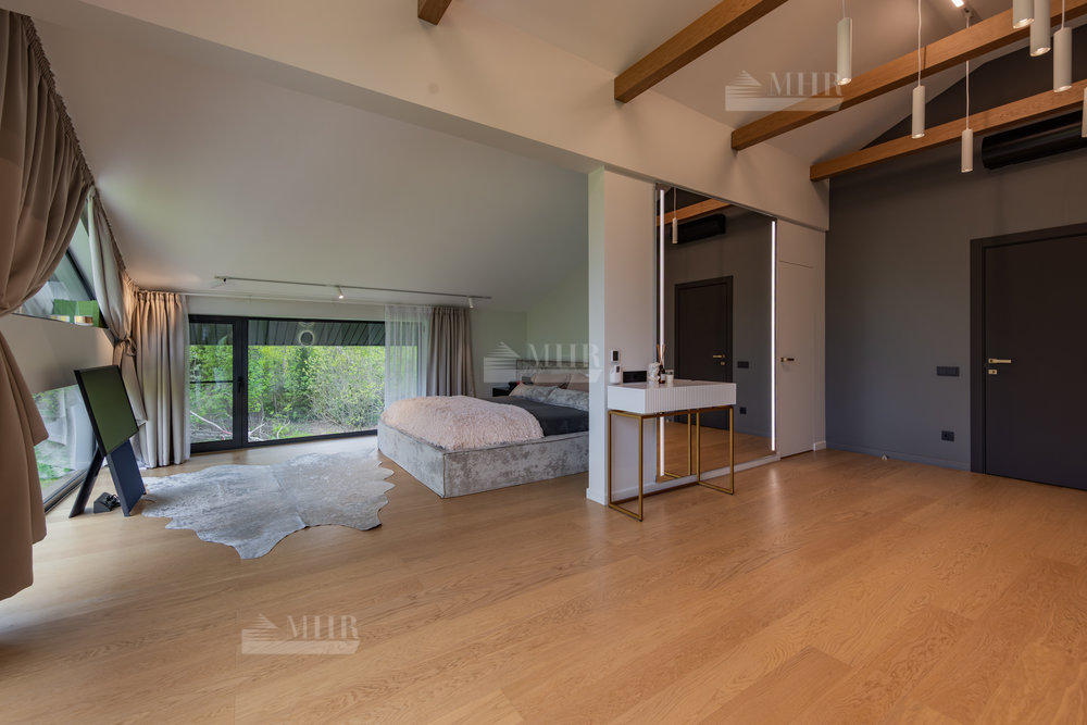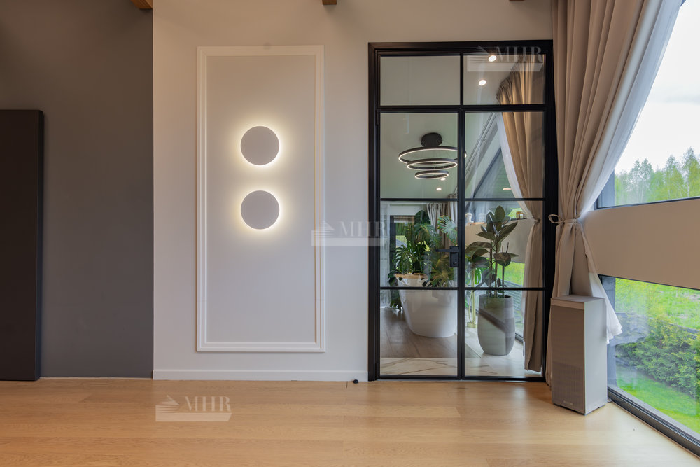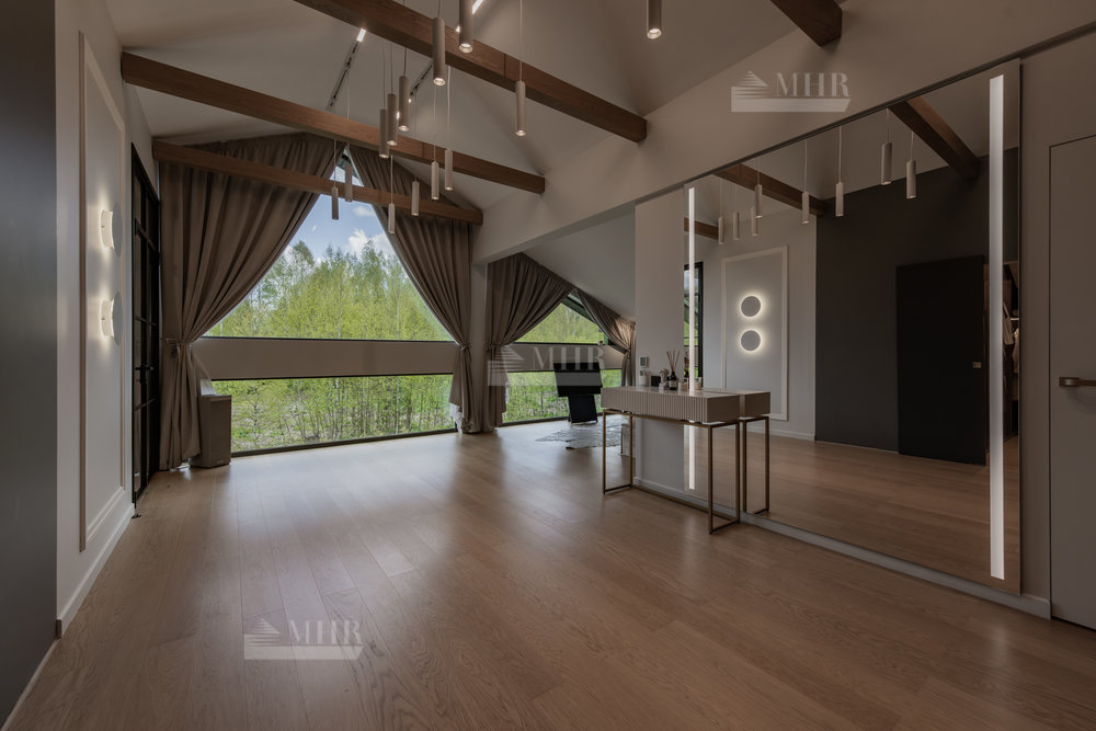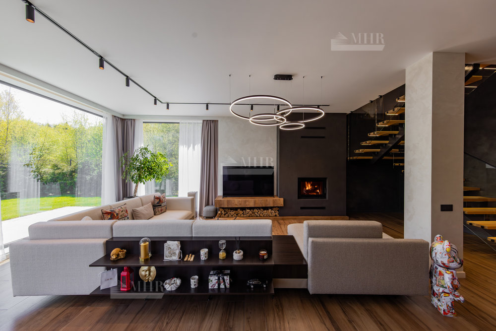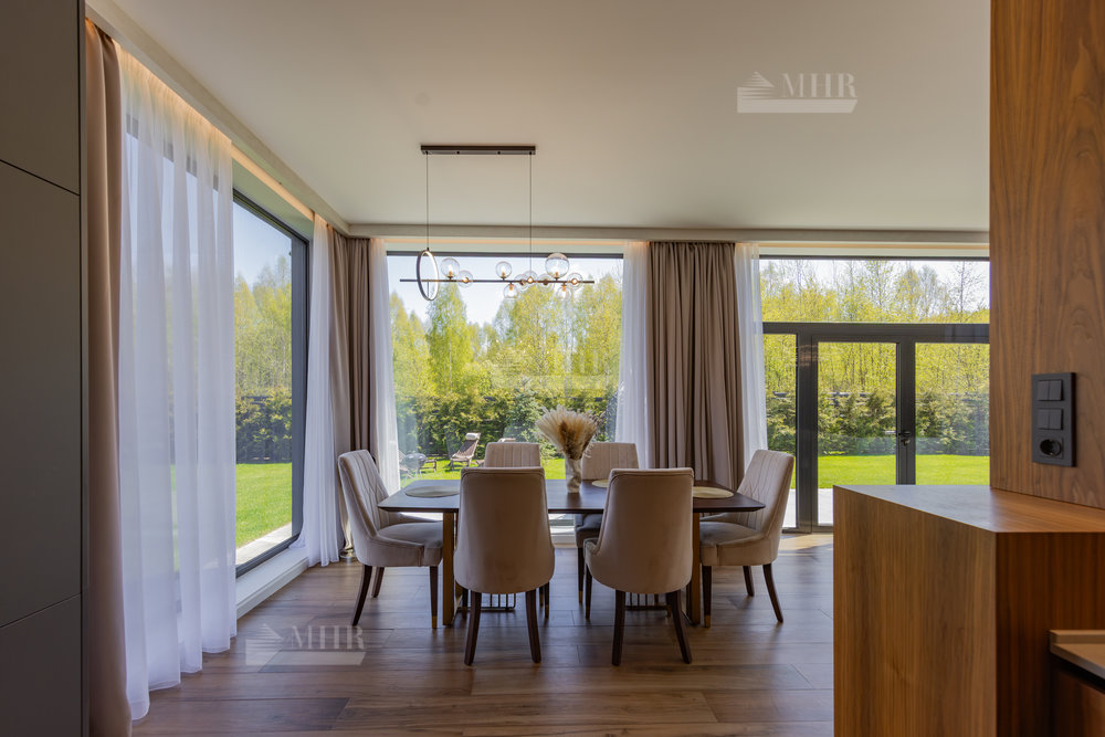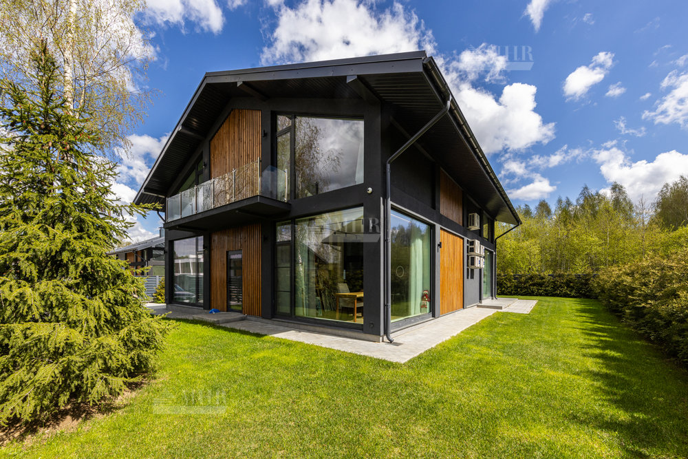 Предлагаем к покупке стильный и современный дом в охраняемом посёлке «Рига парк», из поселка прямой выход к реке, вдоль поселка и реки прогулочная зона. Участок угловой, с двух сторон лес.