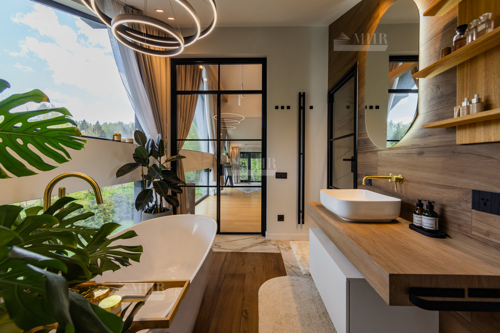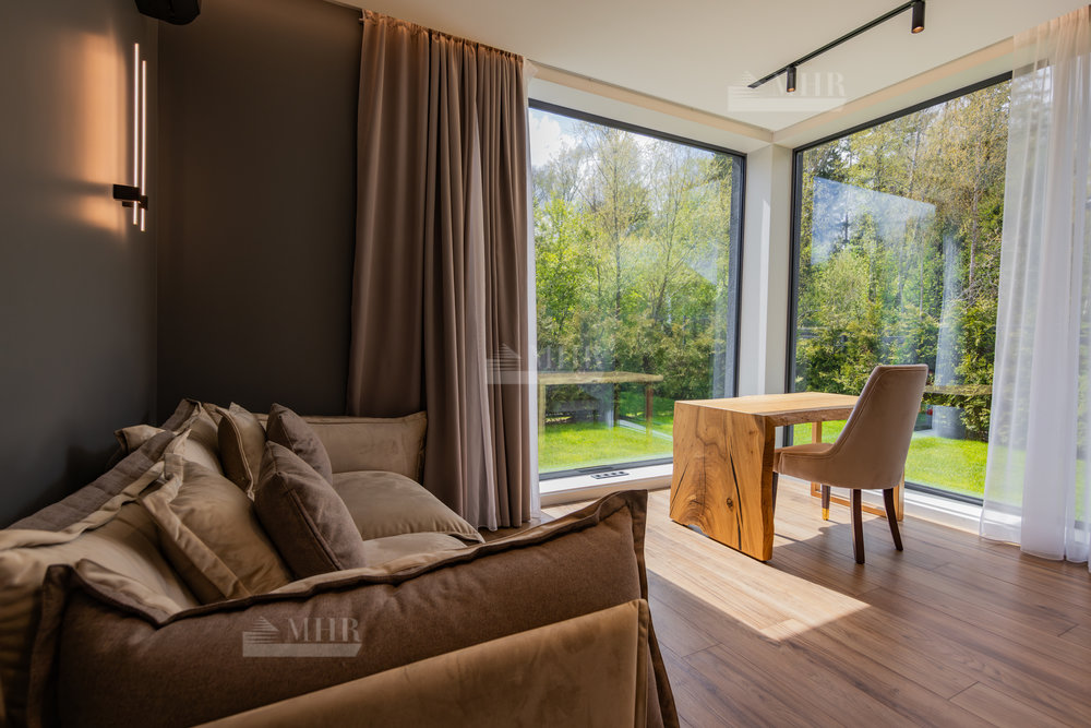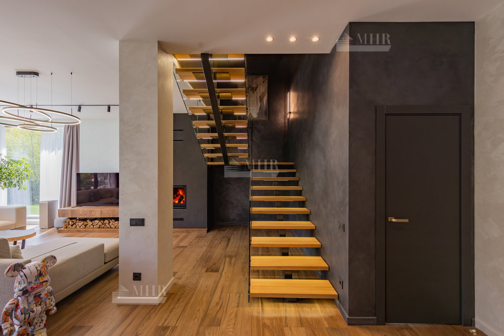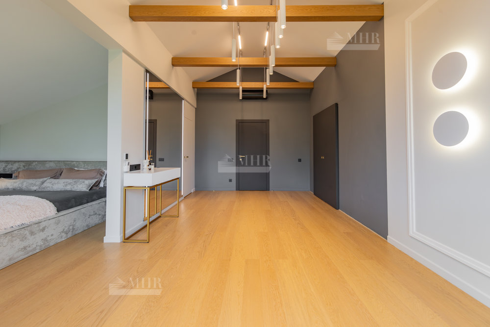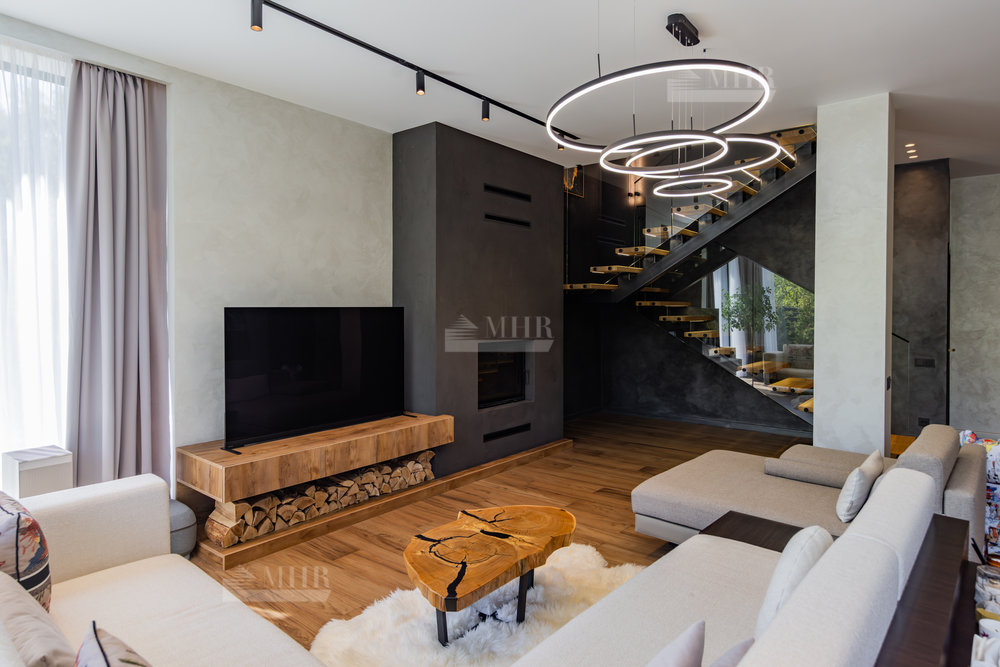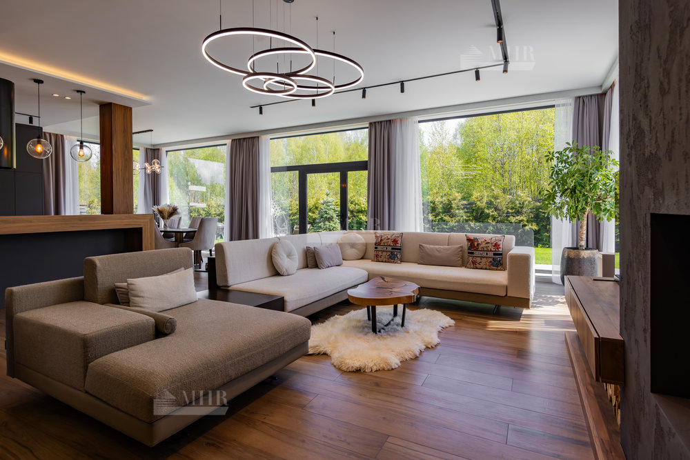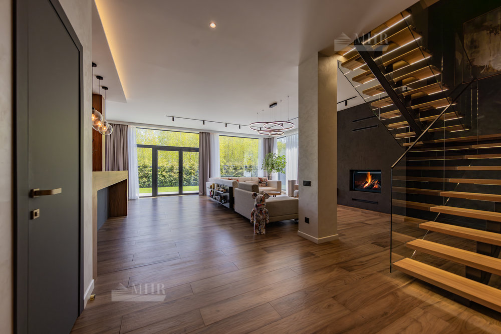Предлагаем к покупке стильный и современный дом в охраняемом посёлке «Рига парк», из поселка прямой выход к реке, вдоль поселка и реки прогулочная зона. Участок угловой, с двух сторон лес.
